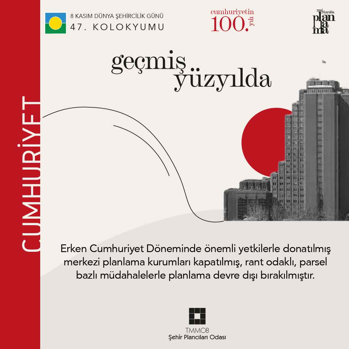 Erken Cumhuriyet Döneminde önemli yetkilerle donatılmış merkezi planlama kurumları kapatılmış, rant odaklı, parsel bazlı müdahalelerle planlama devre dışı bırakılmıştır.
