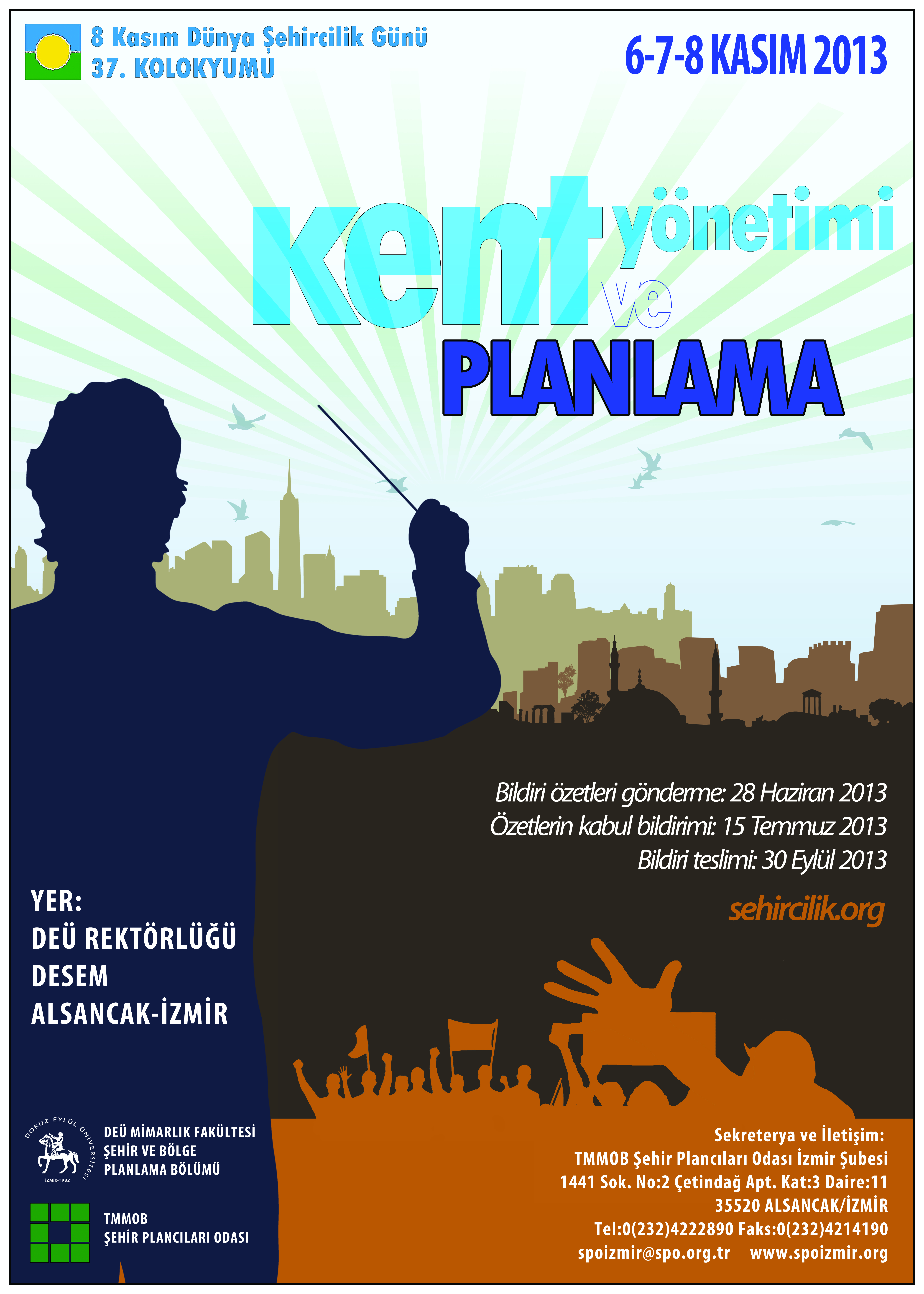 Dünya Şehircilik Günü 37. Kolokyumunda, 2000`li yılların başından itibaren yasalarımıza da yansıyan yeniden yapılanma sürecinin kentin yönetimi ve yönetim süreçlerinin mekânsal planlama üzerindeki etkilerinin neler olduğu konusunun tartışılması amaçlanmıştır. Büyükşehir Belediyesi Yasası ile önerilen yönetim sınırları nasıl bir mekansal, siyasal, ekonomik ve toplumsal ölçeğe karşılık gelmektedir? Büyükşehir sınırlarındaki kent parçaları ve yerleşimler, kentsel hizmetlerden hangi ölçekte yararlanmışlardır? Kentin makro ölçekteki planlama stratejileri ve uygulamaları alt bölgelere, hiyerarşik ve eşit olarak yansımış mıdır? Kentin yönetiminde; idari, siyasi ve planlama yönünden ne tür yetki kargaşası ortaya çıkmıştır? Büyükşehir belediyelerinin kentsel yatırım ve planlama yetkilerini kendilerinde toplamaları, "yerinden yönetim" ilkesini nasıl etkilemektedir.