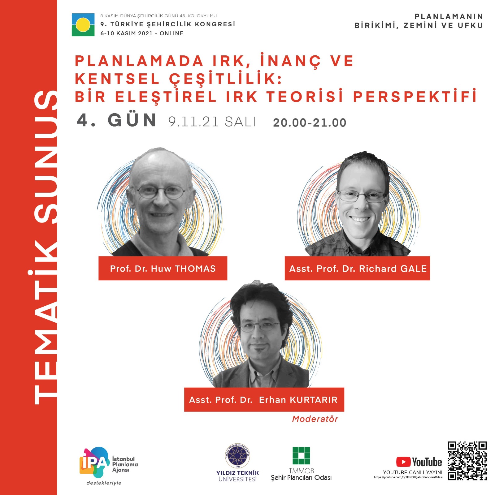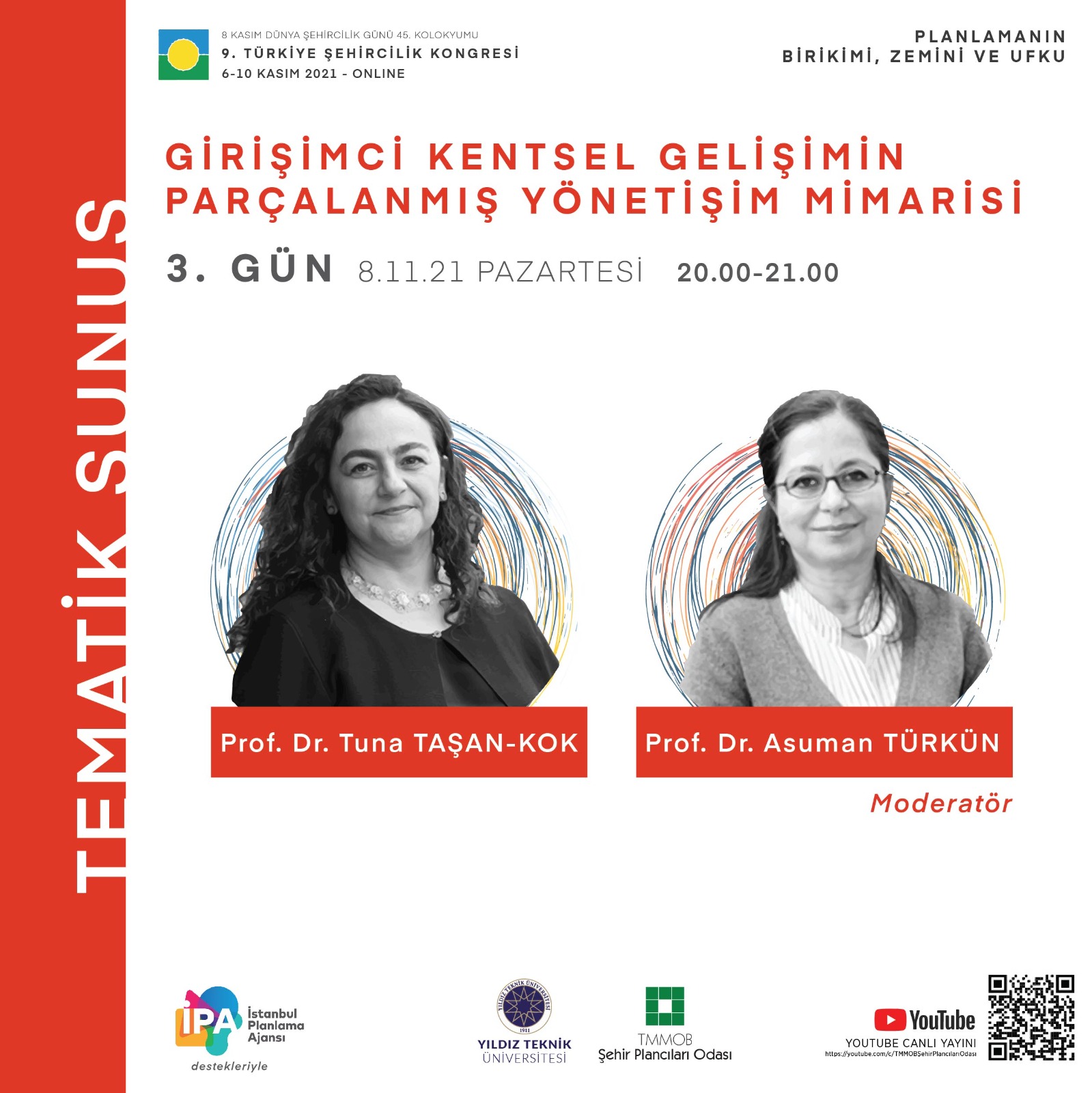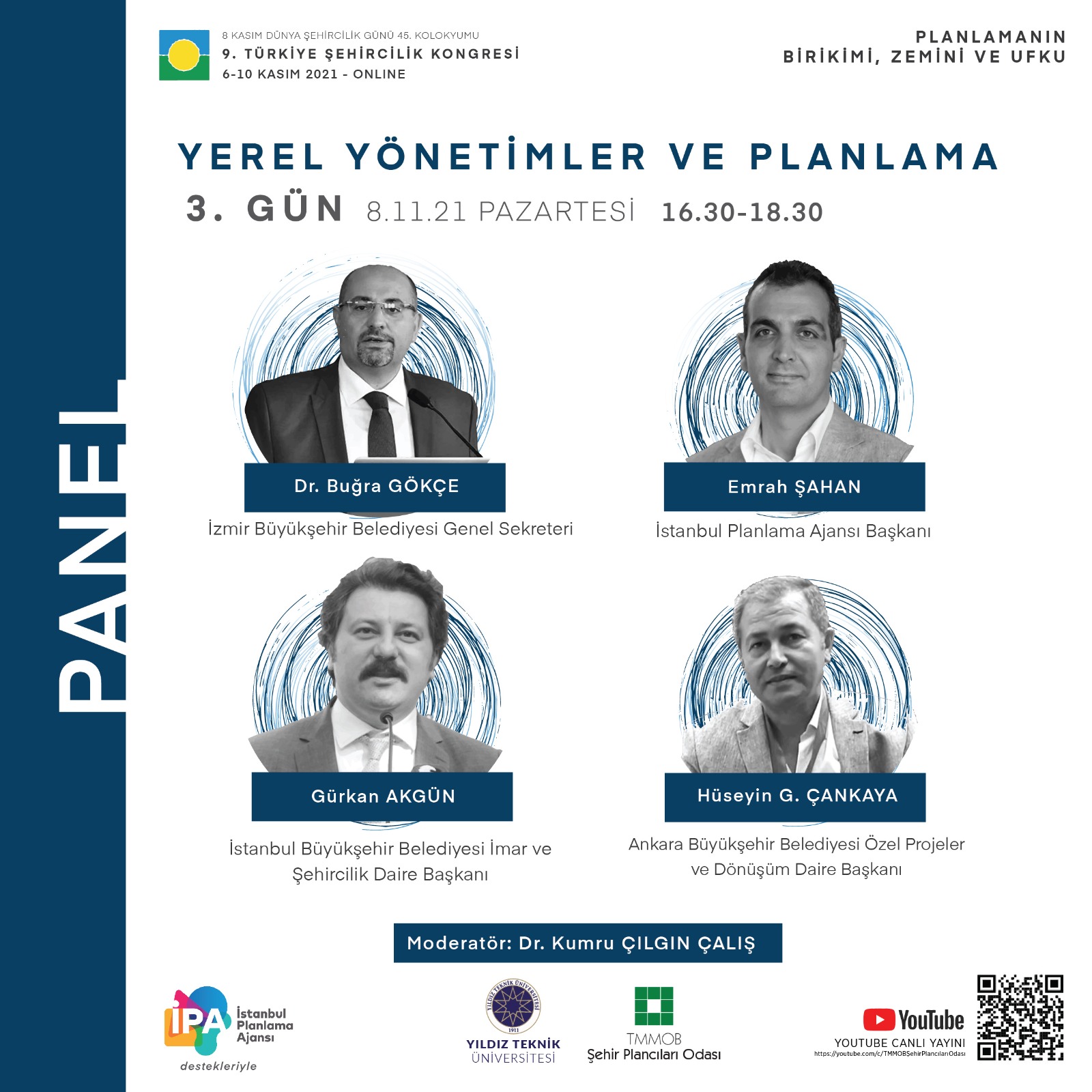 8 Kasım Dünya Şehircilik Günü 45. Kolokyumu 9. Türkiye Şehircilik Kongresi 6-10 Kasım 2021 tarihlerinde "Planlamanın Birikimi, Zemini ve Ufku" temasıyla TMMOB Şehir Plancıları Odası YouTube hesabından canlı olarak gerçekleştirilecektir. Kongre programına ve görsellere ekten ulaşabilirsiniz.