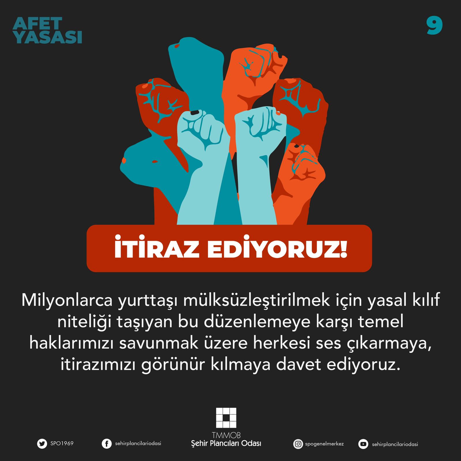 9- Milyonlarca yurttaşı mülksüzleştirilmek için yasal kılıf niteliği taşıyan bu düzenlemeye karşı temel haklarımızı savunmak üzere herkesi ses çıkarmaya, itirazımızı görünür kılmaya davet ediyoruz.
