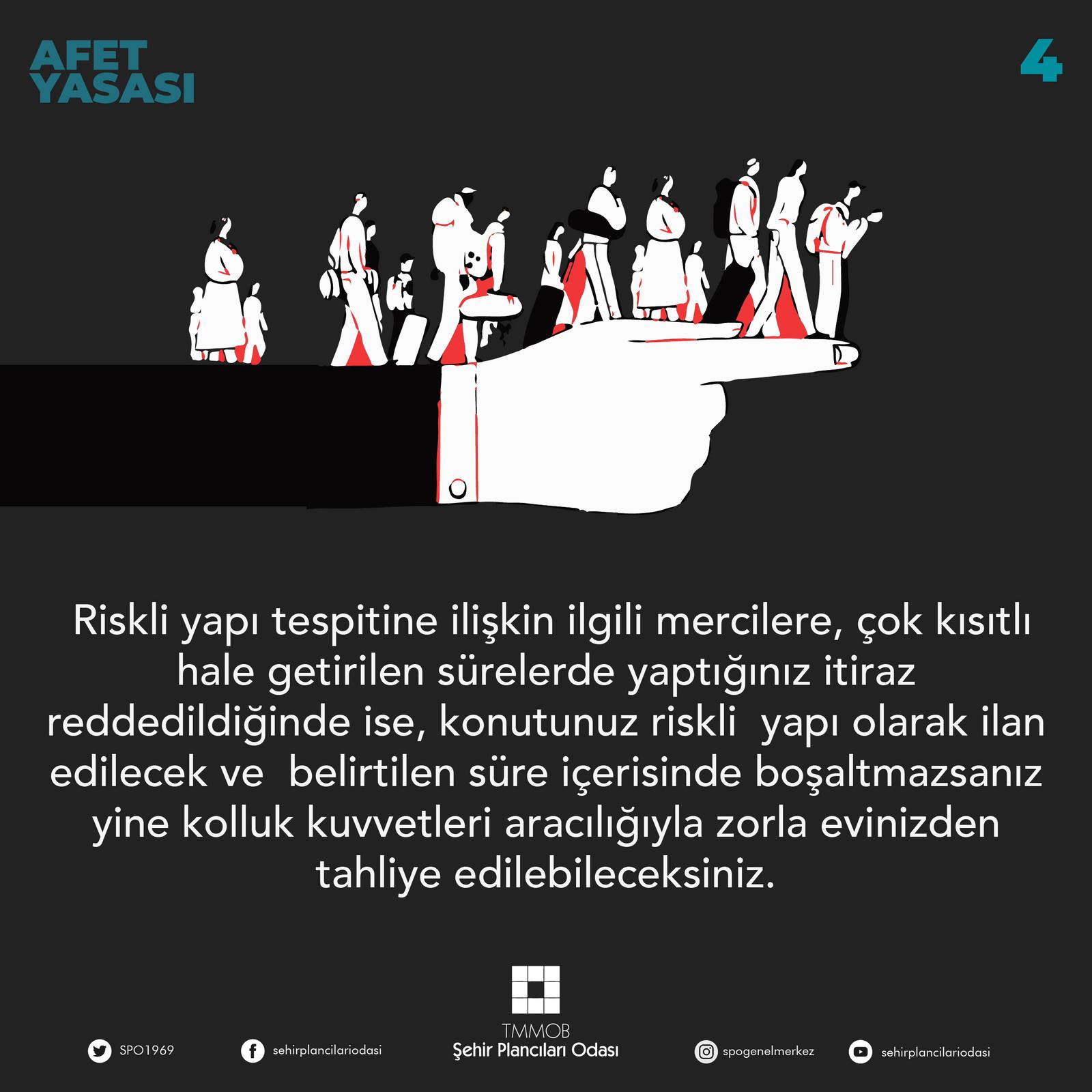4- Riskli yapı tespitine ilişkin ilgili mercilere, çok kısıtlı hale getirilen sürelerde yaptığınız itiraz reddedildiğinde ise, konutunuz riskli yapı olarak ilan edilecek ve belirtilen süre içerisinde boşaltmazsanız yine kolluk kuvvetleri aracılığıyla zorla evinizden tahliye edileceksiniz.