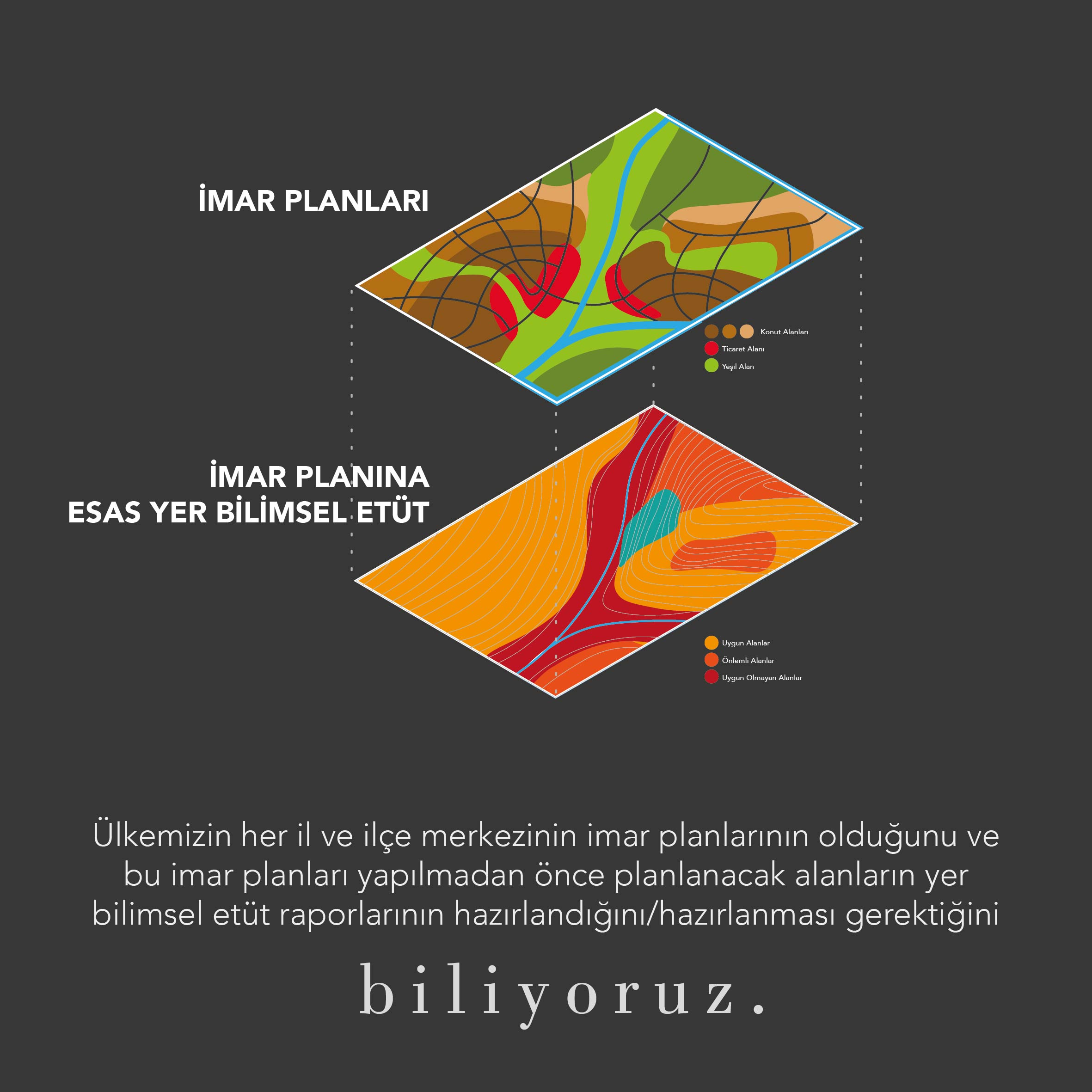 - Ülkemizin her il ve ilçe merkezinin imar planlarının olduğunu ve bu imar planları yapılmadan önce planlanacak alanların yer bilimsel etüt raporlarının hazırlandığını/hazırlanması gerektiğini biliyoruz.