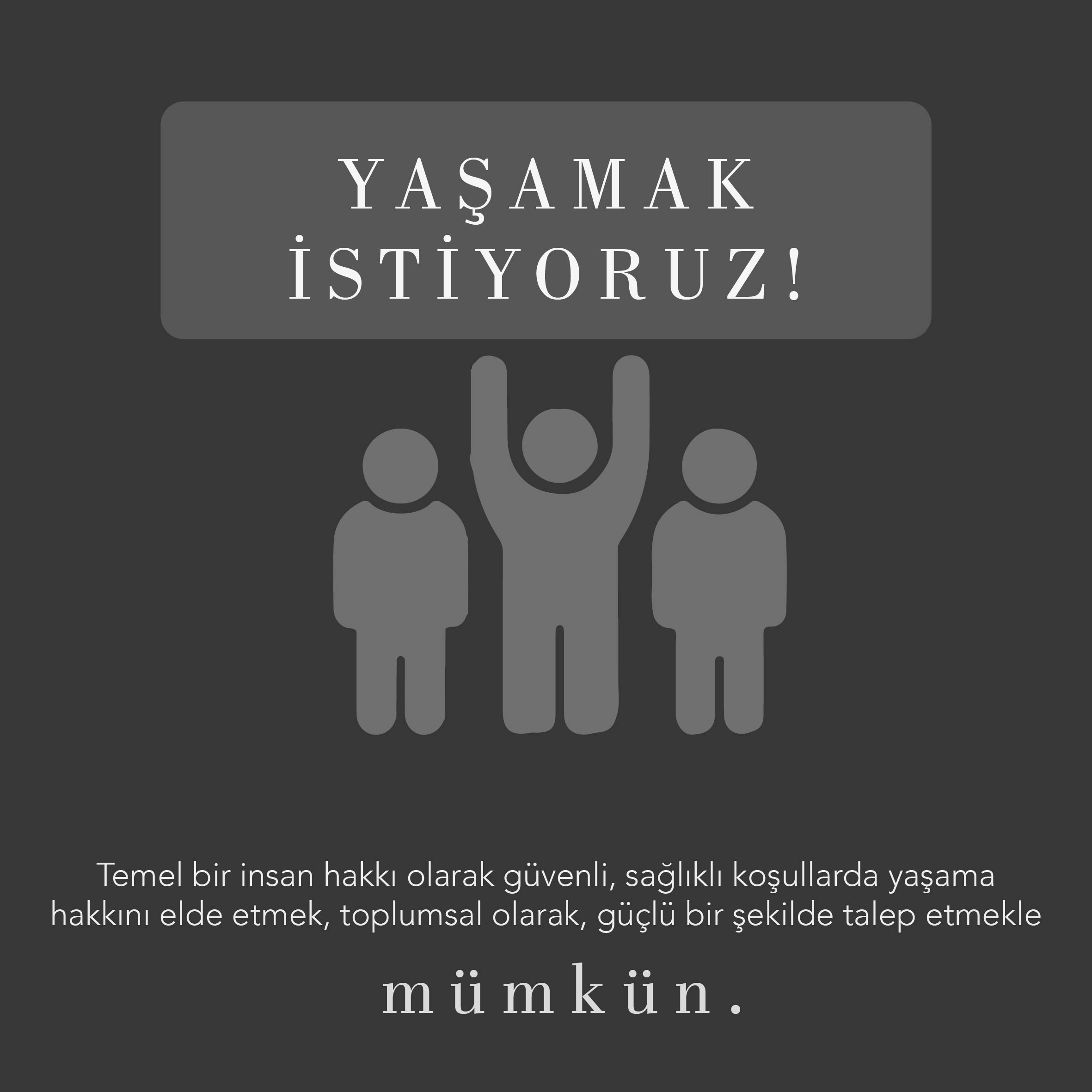 - Temel bir insan hakkı olarak güvenli, sağlıklı koşullarda yaşama hakkını elde etmek, toplumsal olarak, güçlü bir şekilde talep etmekle mümkün.