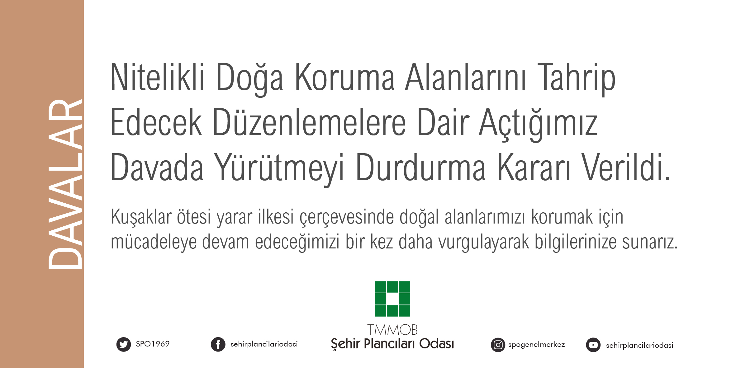 DAVA SONUCU: NİTELİKLİ DOĞA KORUMA ALANLARINI TAHRİP EDECEK DÜZENLEMELERE DAİR AÇTIĞIMIZ DAVADA YÜRÜTMEYİ DURDURMA KARARI VERİLDİ.