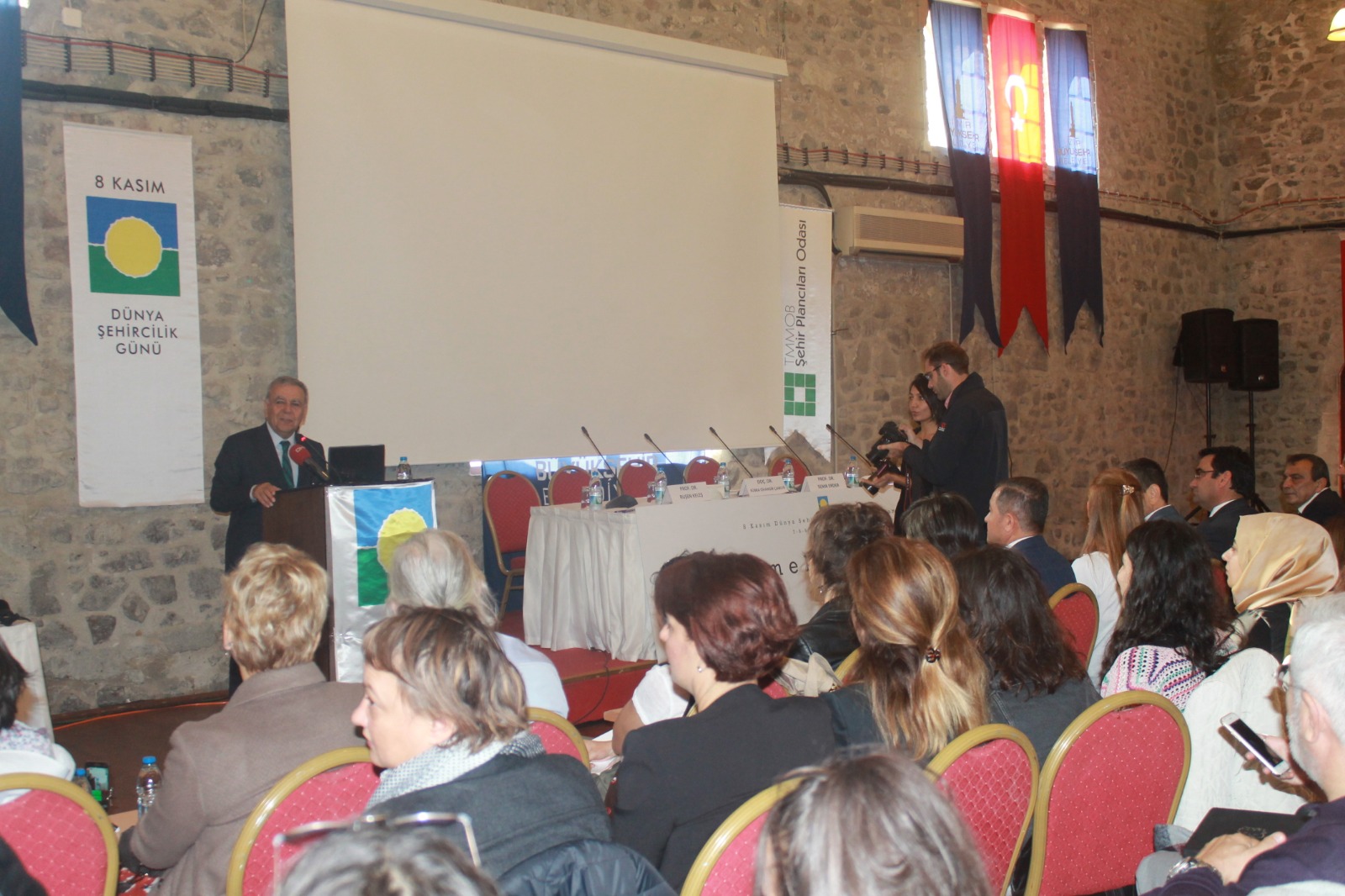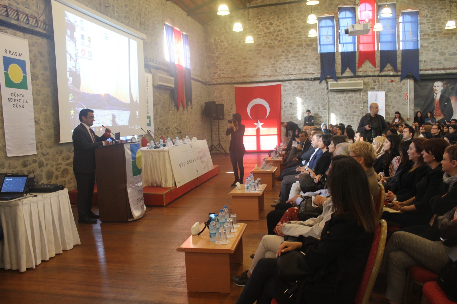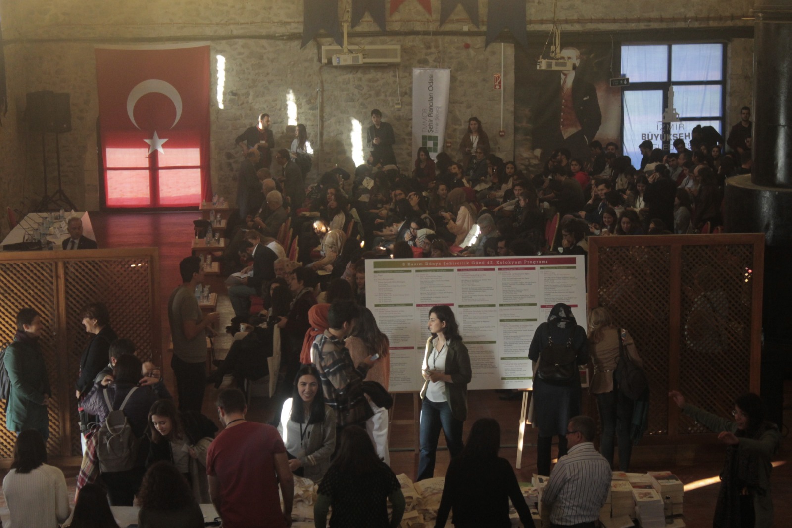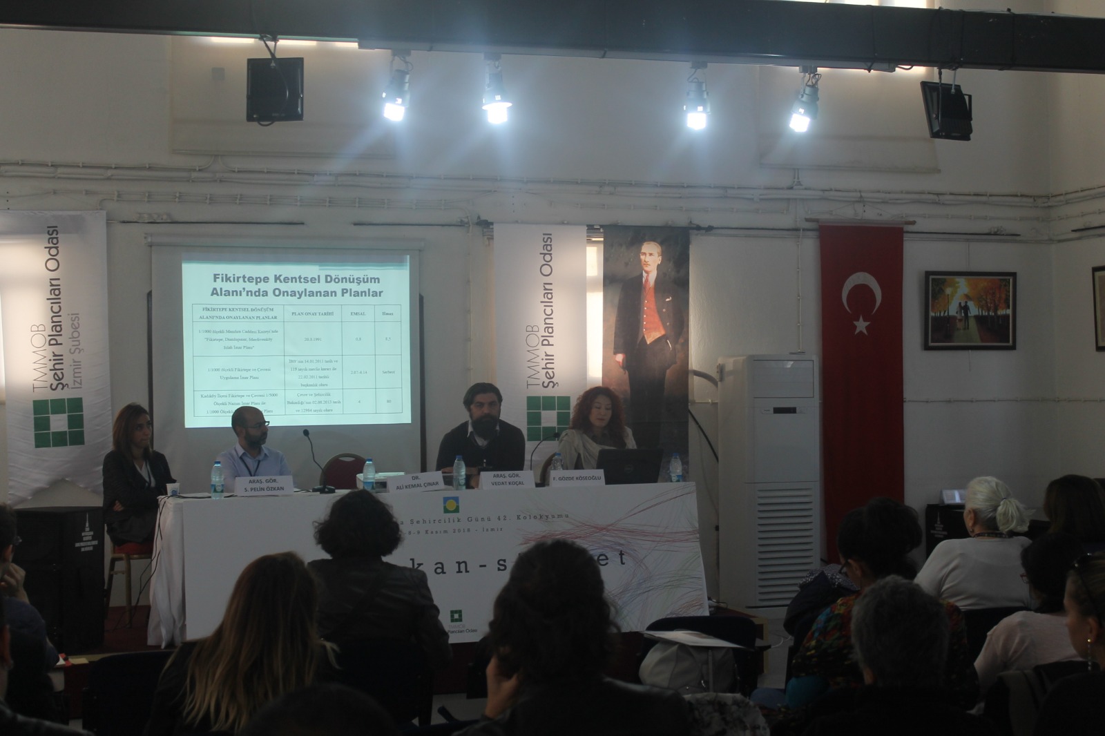 8 Kasım Dünya Şehircilik Günü kapsamında bu yıl 42.sini düzenlediğimiz Dünya Şehircilik Günü Kolokyumu "Göç-Mekan-Siyaset" temasıyla İzmir Havagazı Fabrikası Kültür Merkezi`nde gerçekleşmiştir. Üç gün boyunca devam eden kolokyumda panellerin yanı sıra toplam 46 sunuş gerçekleştirilmiştir. Kolokyumun ilk günü; "Açılış Konuşmaları", "DŞG Bildirgesinin sunulması", "Çerçeve Sunum", "Açılış Oturumu", "Kentsel Siyaset, Planlama ve Göç", "Göç ve Entegrasyon", "Göç ve Kentte Birlikte Yaşam", Ekolojik Kriz, Zorunlu Göç ve Planlama" oturumları ikinci günü; "Bölge ve Kırsal Alanlarda Göç", "Sermaye Hareketliliği ve Göç", "Uluslararası Kuruluşlar ve Göç Çalışmaları", "Emek Piyasaları ve Göç", "Göçmenler ve Dayanışma Ağları", Sponsor Firma Sunumları ve Kolokyum kapsamında düzenlenen öğrenci çalıştayı çalışmalarının sunulduğu Öğrenci Paneli gerçekleştirilmiştir. Kolokyumun son günü ise; "Nüfus Hareketliliği ve Değişen Kent", "Türkiye`de Göç Çalışmaları", "Mekan ve Göç", "Sanatta Göç" oturumlarının ardından "Değerlendirme ve Sonuç" ve "Panel -Forum" ile son bulmuştur.