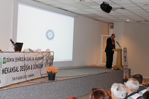 Açılış konuşmaları sonrasında, meslek alanımızın içinde bulunduğu güncel durumun kısa bir değerlendirmesini ve kentsel dönüşümün temel ilkelerini içeren TMMOB Şehir Plancıları Odası 2012 yılı "Dünya Şehircilik Günü Bildirgesi" Oda Genel Sekreterimiz Hüseyin G. Çankaya tarafından katılımcılara sunuldu. (Bildirgeye bülteninden ve Odamız internet sayfasından ulaşabilirsiniz)