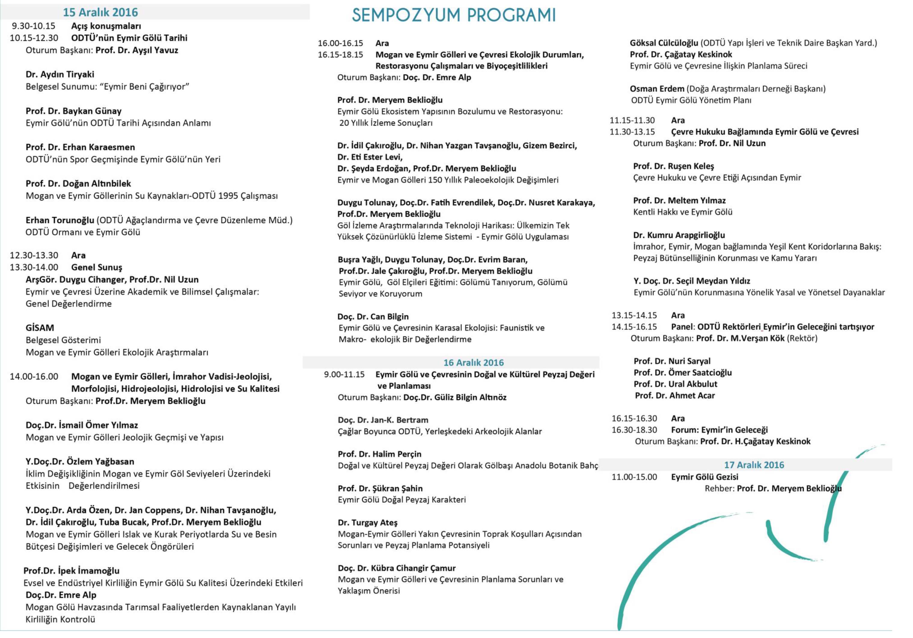 ODTÜ`nün Eymir Gölü ile ilgili tarihini, başta ağaçlandırma uygulamalarını, akademik ve bilimsel çalışma ve araştırma birikimini biraraya getirerek kamuoyuna sunmayı, Eymir Gölü ve Havzasının değerini, geçmişi ve geleceği konusunda bilgilendirerek kamuoyuna aktarmayı, bilimsel bilgi üretimi ve çevre yönetimi konularında toplumu bilgilendirmeyi; farklı alanların uzmanlarını biraraya getirerek konu üzerinde bir odaklanma ve geleceğe yönelik bir program oluşturulmasını sağlamayı amaçlayan Eymir Sempozyumu 15-16 Aralık 2016 tarihlerinde ODTÜ Kültür ve Kongre Merkezi`nde düzenlenecektir.