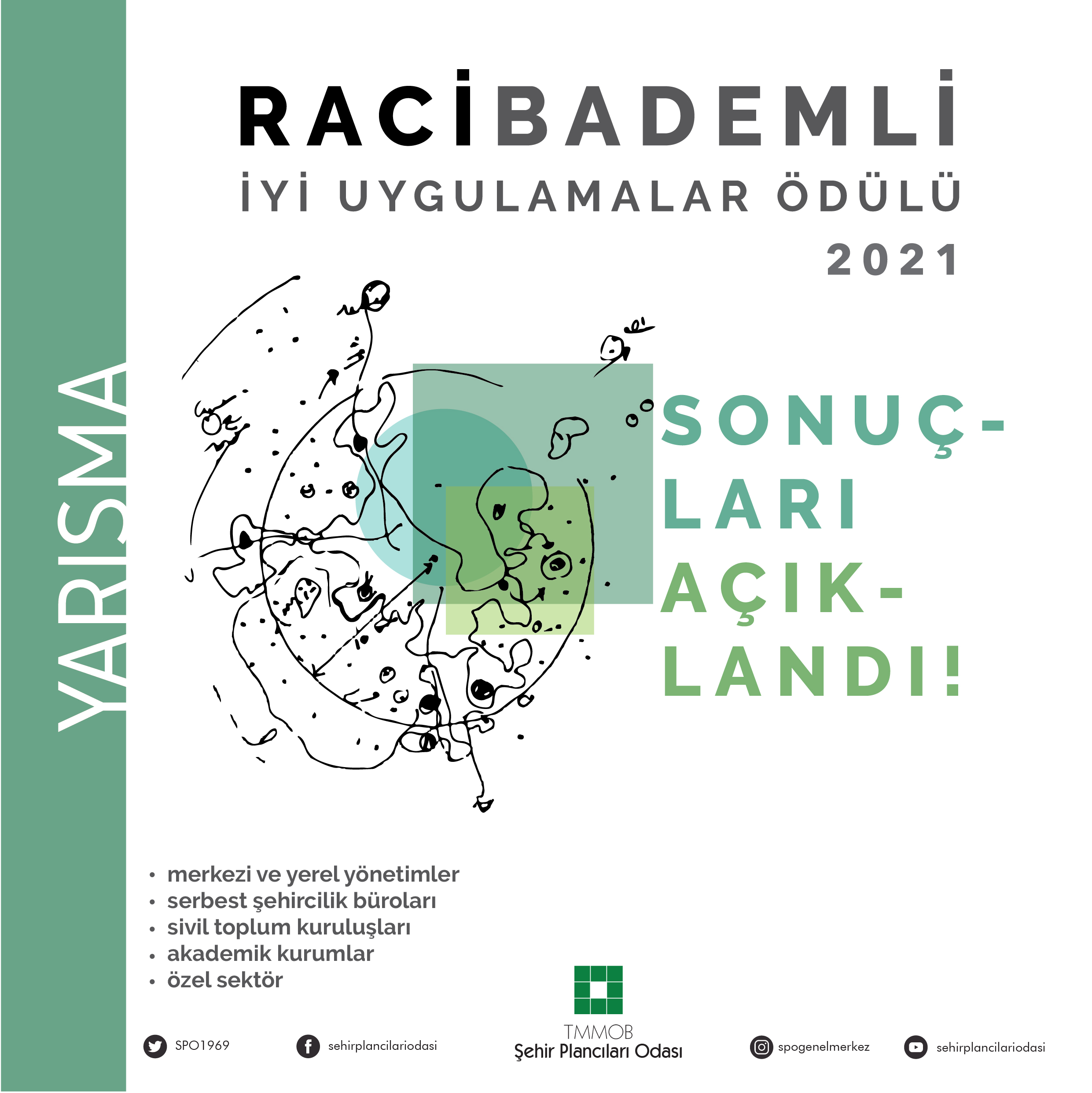 TMMOB Şehir Plancıları Odası Raci Bademli İyi Uygulamalar Ödülü-2021 Yarışması`nda, son teslim tarihi olan 20.09.2021 tarihine kadar teslim alınan 14 adet proje, 12.10.2021 - 17.10.2021 tarihlerinde çevrimiçi olarak toplanan jüri değerlendirme kurulu tarafından incelenmiş ve aşağıda yer alan konular karara bağlanmıştır;