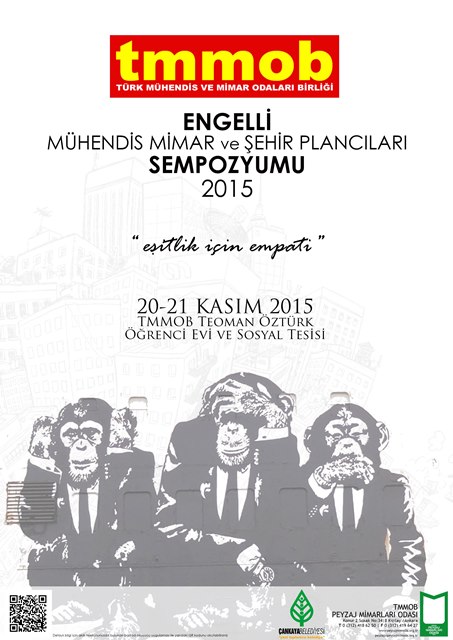 Sekreteryası Türk Mühendis ve Mimar Odaları Birliği adına TMMOB Peyzaj Mimarları Odasınca yürütülen ve TMMOB`nin 43. Dönem Çalışma Programı`nda engelli meslektaşların sorun ve çözümlerine yönelik olarak yer verilen "TMMOB Engelli Mühendis, Mimar ve Şehir Plancıları Sempozyumu" 20-21 Kasım 2015 tarihinde gerçekleşecektir.