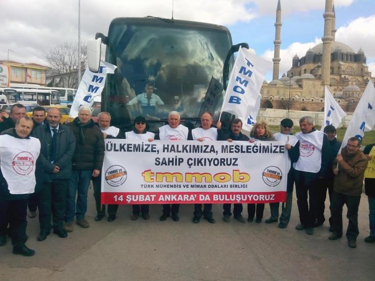 TMMOB Yasası`nı değiştirerek TMMOB`yi işlevsizleştirmeye yönelik düzenlemeleri de içeren torba yasaya karşı Türkiye`nin 8 bölgesinden başlatılan yürüyüşün ilk günü (10 Şubat 2015) renkli görüntülere sahne oldu. TMMOB üyesi mühendis, mimar ve şehir plancılar "Ülkemize, halkımıza ve mesleğimize sahip çıkıyor, Ankara yürüyüşümüzü başlatıyoruz" diyerek Edirne, Bodrum, Hatay, Van, Artvin ve Balıkesir`den yola çıktılar.