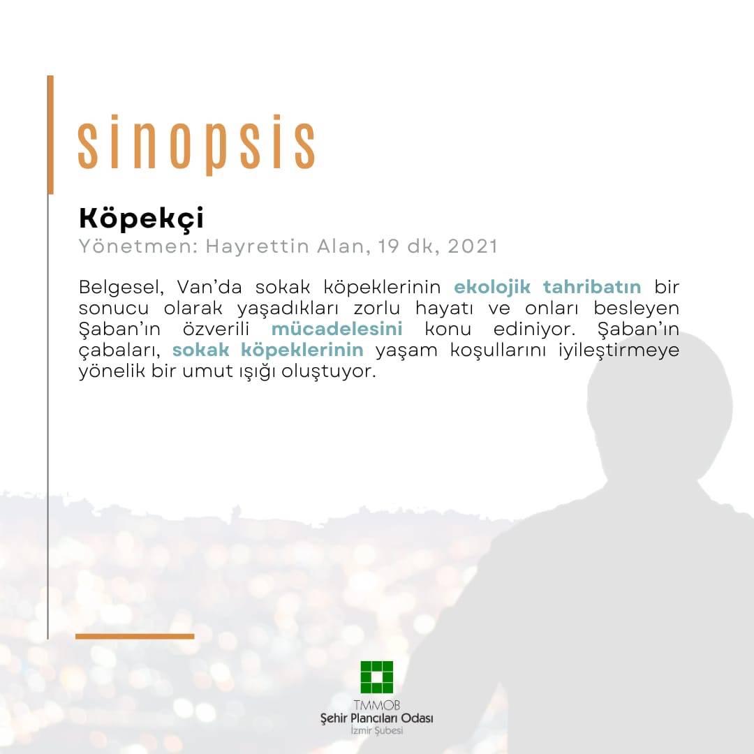 TMMOB Şehir Plancıları Odası İzmir Şubesi Kenti İzli`yorum Çalışma Grubu tarafından düzenlenen atölyede, kimi temel planlama başlıklarının izlenecek belgesel filmler üzerinden tartışılması hedefleniyor.