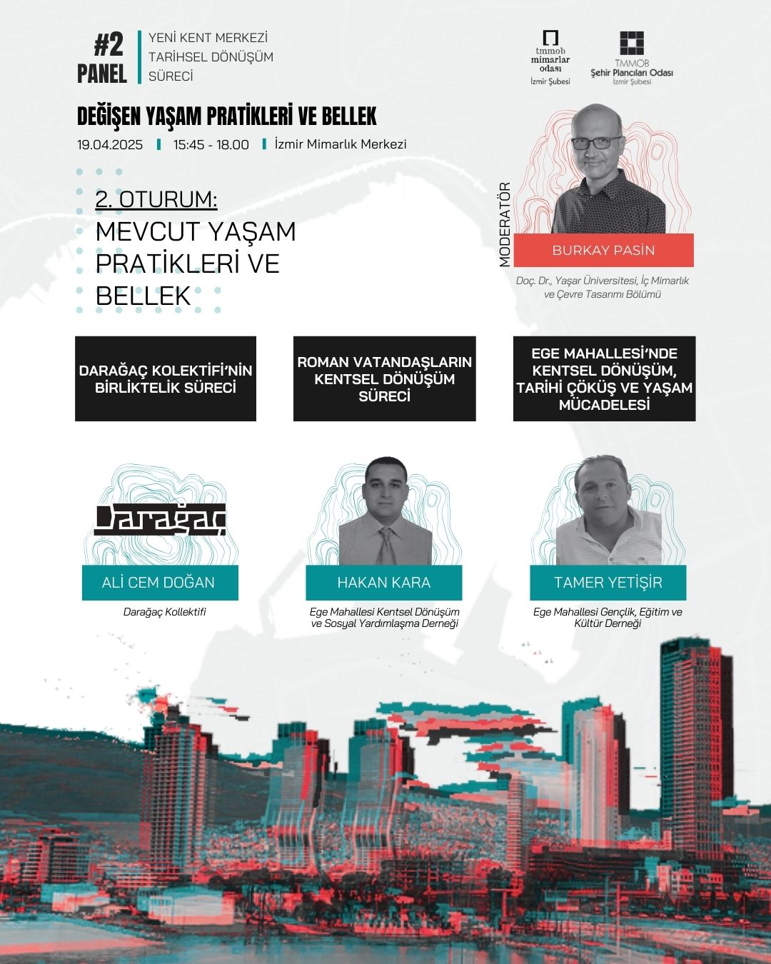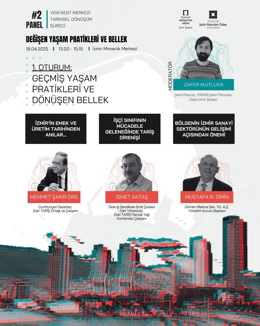 Bölgenin tarihsel dönüşüm sürecini kentin gündemine taşıyabilmek ve hızla ilerleyen dönüşüm süreçleri karşısında kentsel belleği canlı tutarak alanın sorunlarını tartışabilmek için; ikincisini 19 Nisan 2025 tarihinde gerçekleştireceğimiz "Değişen Yaşam Pratikleri ve Bellek" başlıklı panele başta meslektaşlarımız ve öğrenci arkadaşlarımız olmak üzere ilgi duyan herkesi davet ediyoruz.