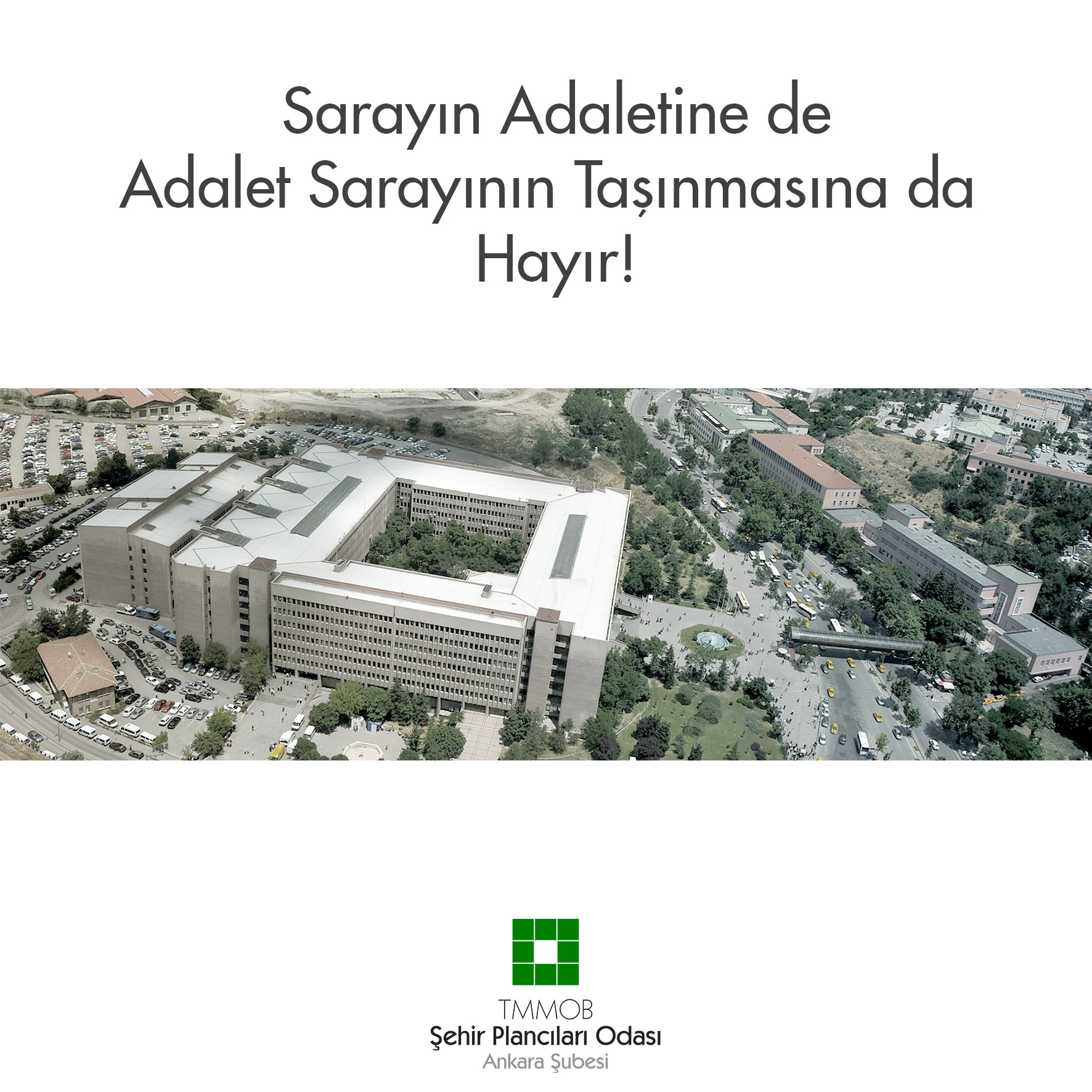 Bütün bu eleştirilerimizin ötesinde, Adalet Sarayı‘nın taşınacağı alan olarak belirtilen alana ilişkin Ankara Büyükşehir Belediyesi‘nin 16.08.2013 tarih ve 1551 sayılı kararı ile onaylanan plan Şubemiz tarafından yargıya taşınmış söz konusu plan değişikliği, bilirkişiler tarafından hazırlanan raporda şehircilik ilkeleri ve kamu yararına aykırı bulunmasına rağmen Ankara 9. İdare Mahkemesi tarafından plan iptali talebimiz reddedilmiştir. Melih Gökçek, şehircilik ilkelerine aykırılığı tescillenen bu plana göre işlem yapacağını açıklamakta beis görmemiştir.