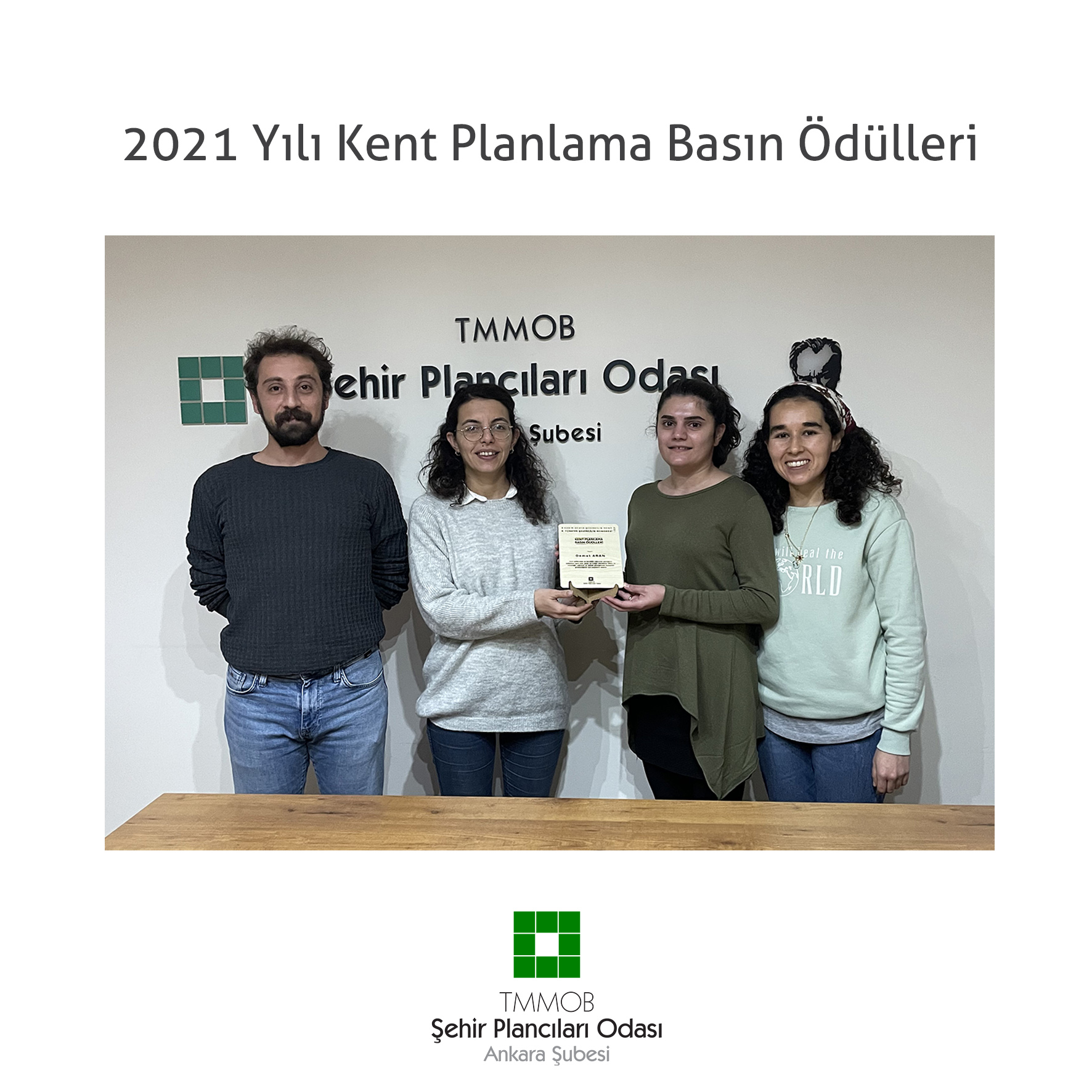 Ankara kent gündemini yakından takip etmesi, bu konularda kamuoyunu bilgilendirmesi, Saraçoğlu, Güvenpark, Cebeci Stadyumu, kentsel dönüşüm projeleri ve diğer kent haberleri dolayısıyla, Anayurt Gazetesi`nden Demet Arana 2021 Yılı Kent Planlama Basın Ödülü verilmesi uygun görülmüştür. Kent planlama bilimine gösterdikleri duyarlılıktan dolayı bir kez daha teşekkür eder, çalışmalarında başarılar dileriz.
