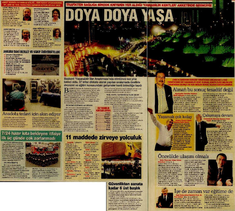 CNBC-E Business dergisi, 81 ilin yaşanabilirlik karnesini çıkardı. Özellikle ekonomi, eğitim ve sağlık alanındaki gelişmeler Ankara‘yı birinciliğe taşıdı. Başkent ‘kültür ve sanat‘da 4, güvenlikte 35‘inci sırada. İstanbul ise 6‘ıncı sırada kaldı. Başkent, kişi başına düşen banka mevduatı, otomobil ve konut sayısının en fazla olduğu kent konumunda.