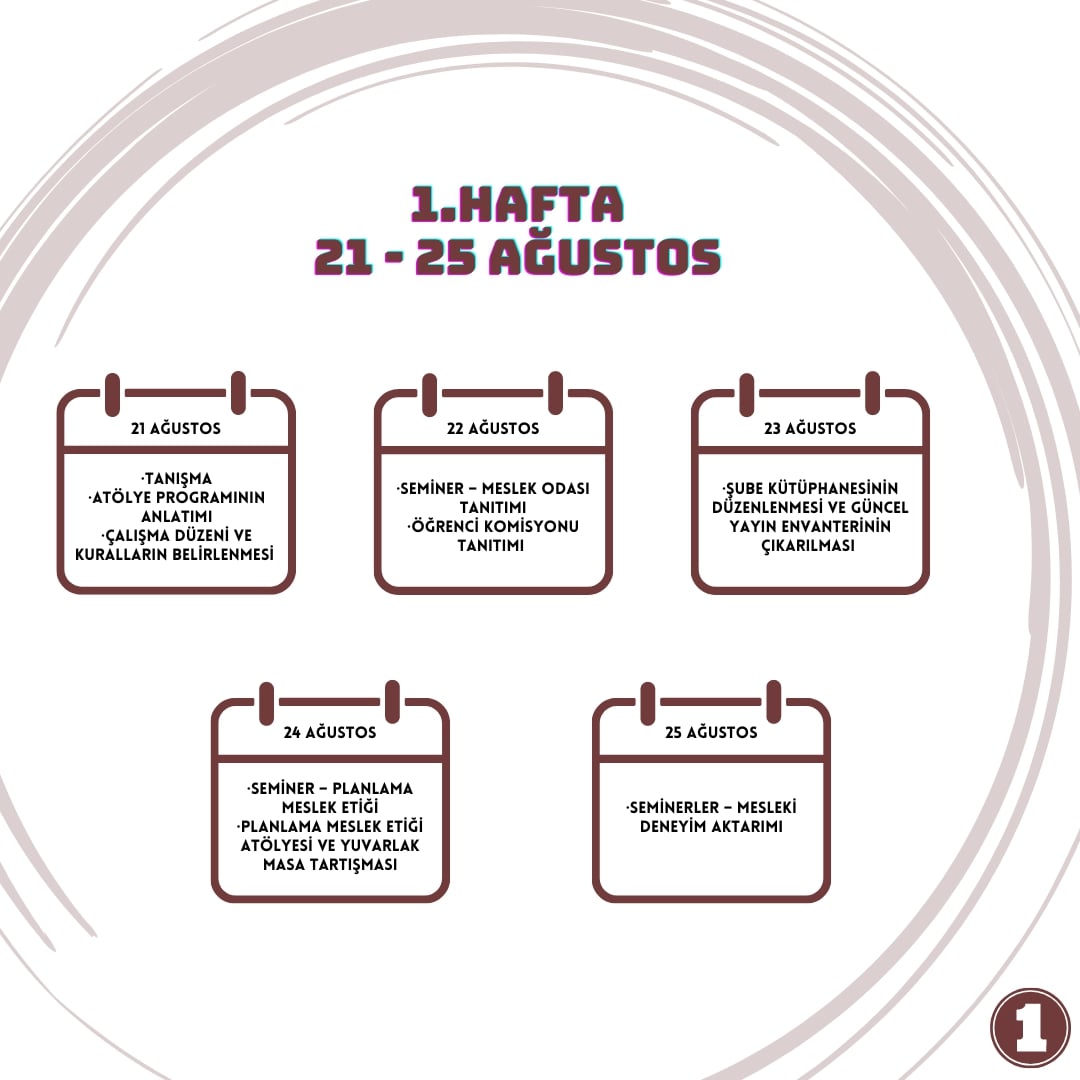 TMMOB Şehir Plancıları Odası olarak 2021 ve 2022 yıllarında şehir ve bölge planlama bölümü öğrencilerinin pandemi sürecinde staj bulmakta zorlanmaları sebebiyle başlattığımız staj atölyesi serimize bu yıl Staj Atölyesi - III Planlama101 ile devam ediyoruz. Staj programının ana hedefleri olarak; TMMOB Şehir Plancıları Odası`nı yakından tanıma, planlama meslek etiğini kavrama, plan türlerini ve planlama kurumlarını tanıma, planlama mevzuatını anlama, dava türleri, itiraz biçimleri ve plan inceleme yöntemlerini öğrenme başlıkları belirlenmiş olup staj 21 Ağustos - 18 Eylül tarihleri arasında Şube mekanında hafta içi saat 09.00 - 18.00 saatleri arasında yüz yüze olarak gerçekleştirilecektir.