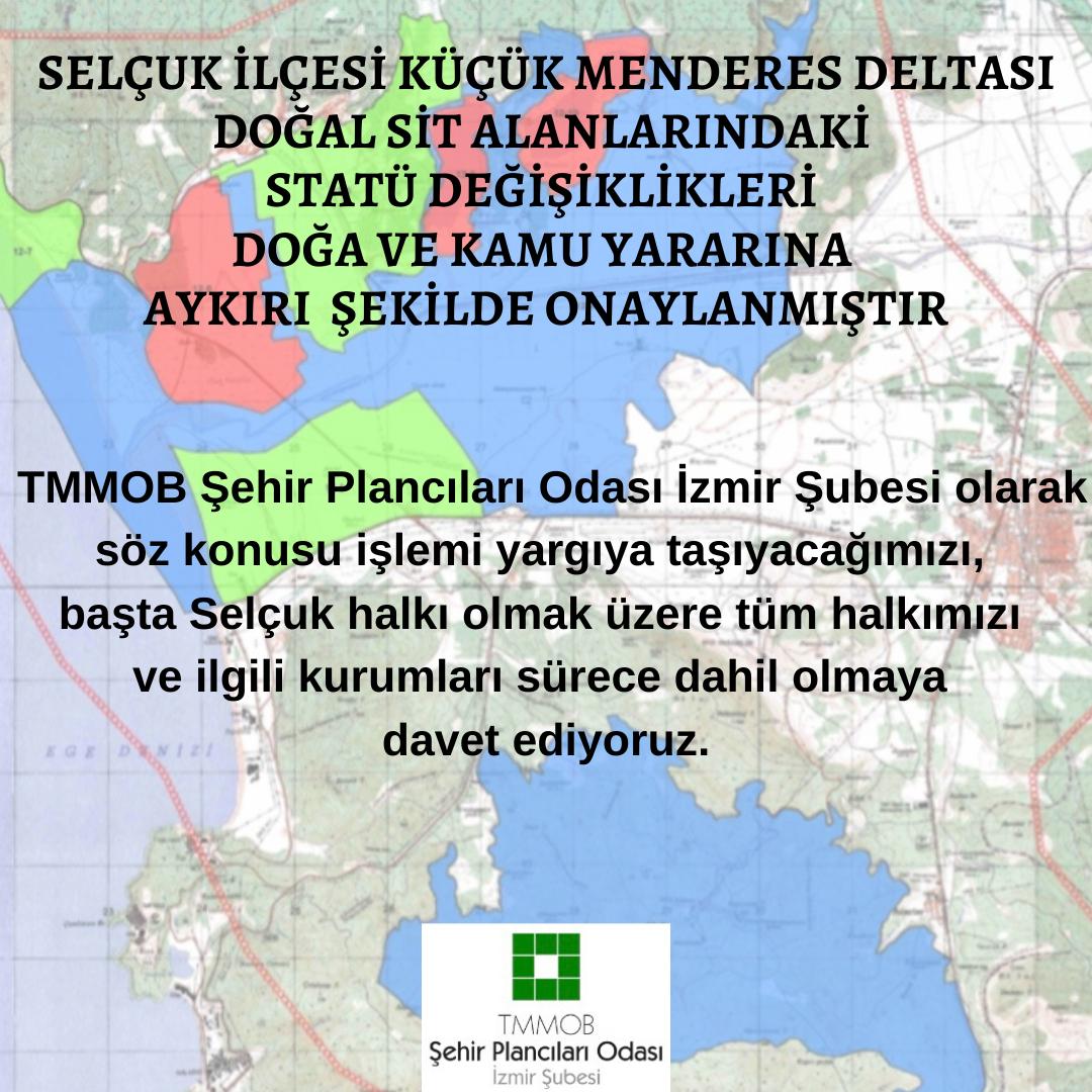 Sonuç olarak bahse konu sit statüsü değişikliklerinin; kamu yararına, koruma mevzuatına, şehircilik ilkelerine ve planlama esaslarına aykırı olduğu ve uygulanması halinde ileride doğada telafisi mümkün olmayan yıkımlara neden olacağı dikkate alınarak, TMMOB Şehir Plancıları Odası İzmir Şubesi olarak söz konusu işlemi yargıya taşıyacağımızı belirtiyor ve başta Selçuk halkı olmak üzere tüm halkımızı ve ilgili kurumları sürece dahil olmaya davet ediyoruz.