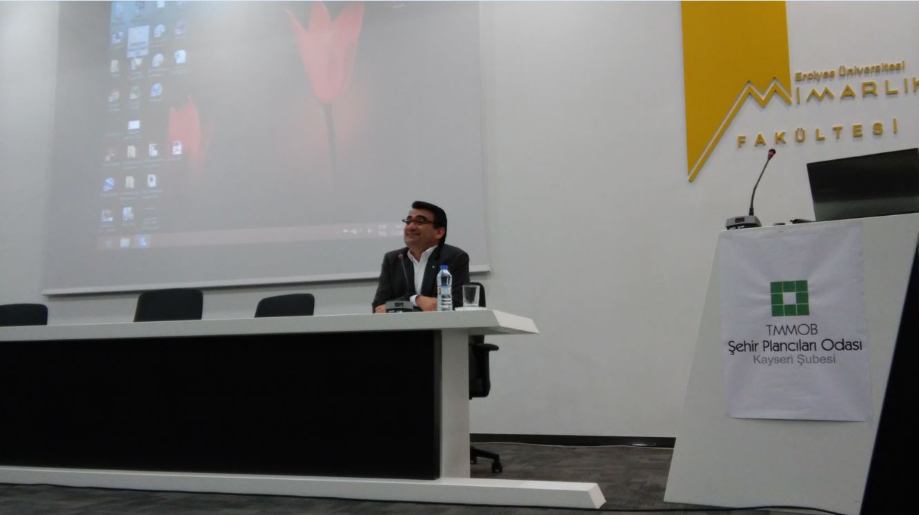 Erciyes Üniversitesi Mimarlık Fakültesi Şevki Vanlı Konferans Salonunda 13.03.2015 tarihinde gerçekleştirilen söyleşiyi, Erciyes ve Bozok Üniversiteleri Şehir ve Bölge Planlama Bölümü öğretim üyeleri, öğrencileri, meslektaşlarımız ve Şubemiz Yönetim Kurulu Üyelerinden oluşan kalabalık bir izleyici kitlesi izledi.