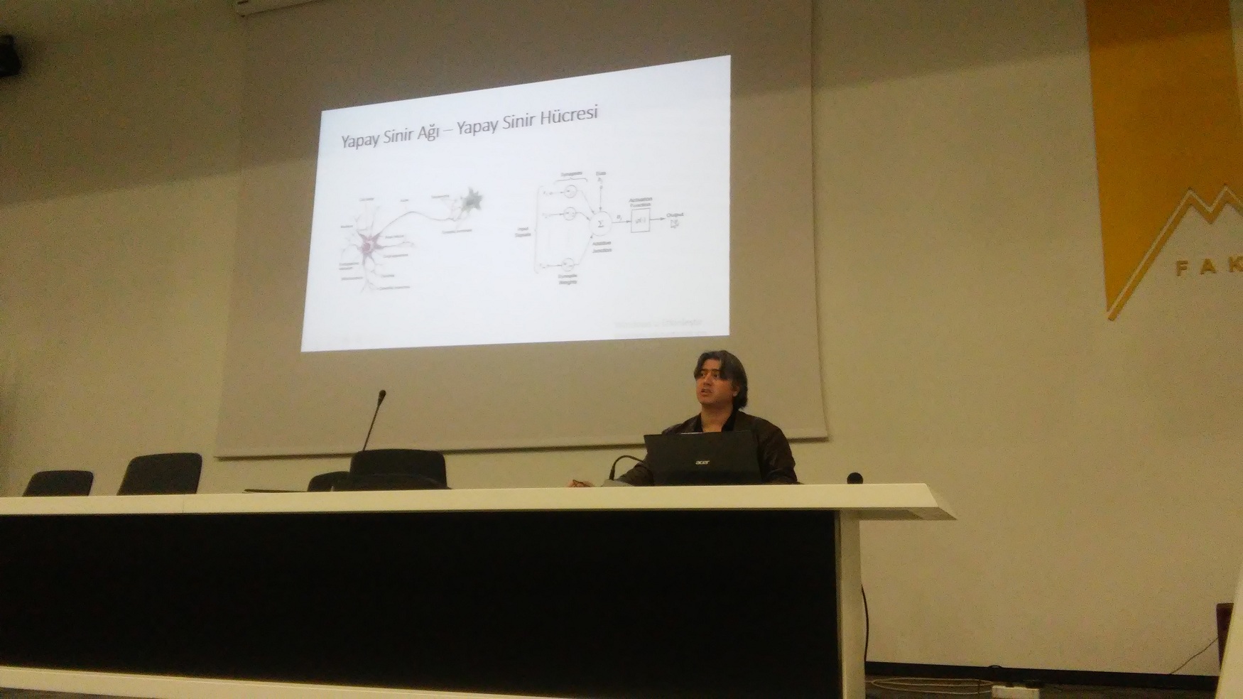 Erciyes Üniversitesi Mimarlık Fakültesi Turgut CANSEVER Konferans Salonunda 17 Mayıs 2018 tarihinde gerçekleştirilen söyleşide, Doç. Dr. Alper BAŞTÜRK "Yapay Zeka" konulu sunumuyla meslektaşlarımız ve öğrencilerimizle bir araya geldi. Sunumun ardından Doç. Dr. Alper BAŞTÜRK öğrencilerimizin, meslektaşlarımızın ve konuklarımızın sorularını yanıtladı.