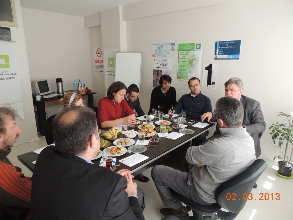 Şubemiz Yönetim Kurulu‘nun yanı sıra, Şubemiz Yerel Yönetimler Komisyonu Başkanı Levent LİVDUMLU, Komisyon Üyeleri Murat Suzi ÜNALAN ve Tamer CİNEL‘in de katıldığı toplantıda Kayseri Büyükşehir Şehir Belediyesi İmar Yönetmeliği görüşüldü.