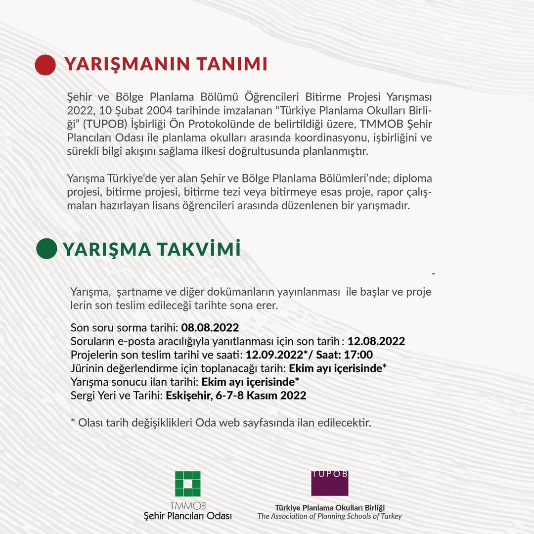 Şehir ve Bölge Planlama Öğrencileri Bitirme Projesi Yarışması-2022