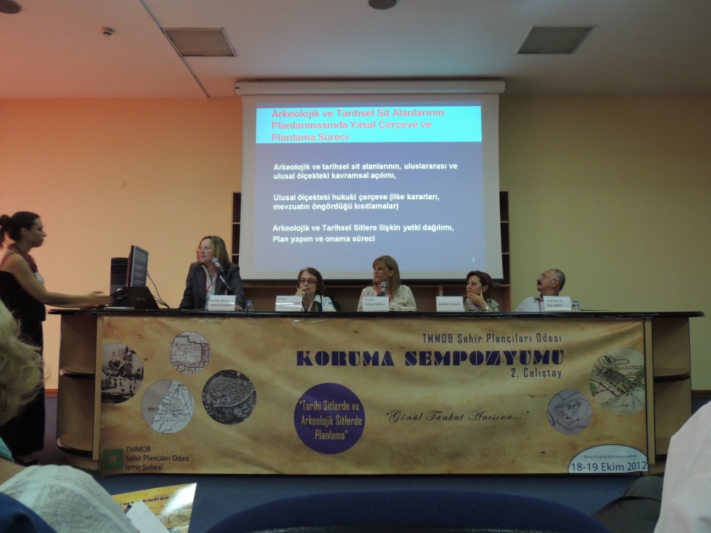 Prof. Dr. Gönül TANKUT anısına düzenlenecek olan "KORUMA SEMPOZYUMU" na hazırlık sürecinde sempozyumda tartışılacak konuların belirginleştirilmesi amacıyla 18-19 Ekim 2012 tarihlerinde İzmir‘de gerçekleştirilen "Tarihi Sitlerde ve Arkeolojik Sitlerde Planlama" konulu 2. Çalıştaya Şube Yönetim Kurulu Başkanı Dr. Seda ÇALIŞIR HOVARDAOĞLU ve Şube Sekreter Yardımcısı ve Mesleki Denetim Görevlisi Ayşe ERKARA katıldılar.