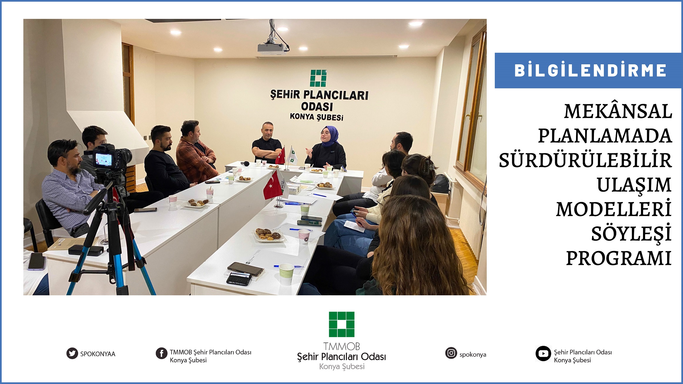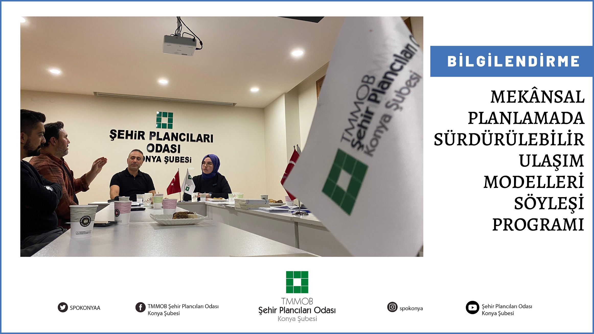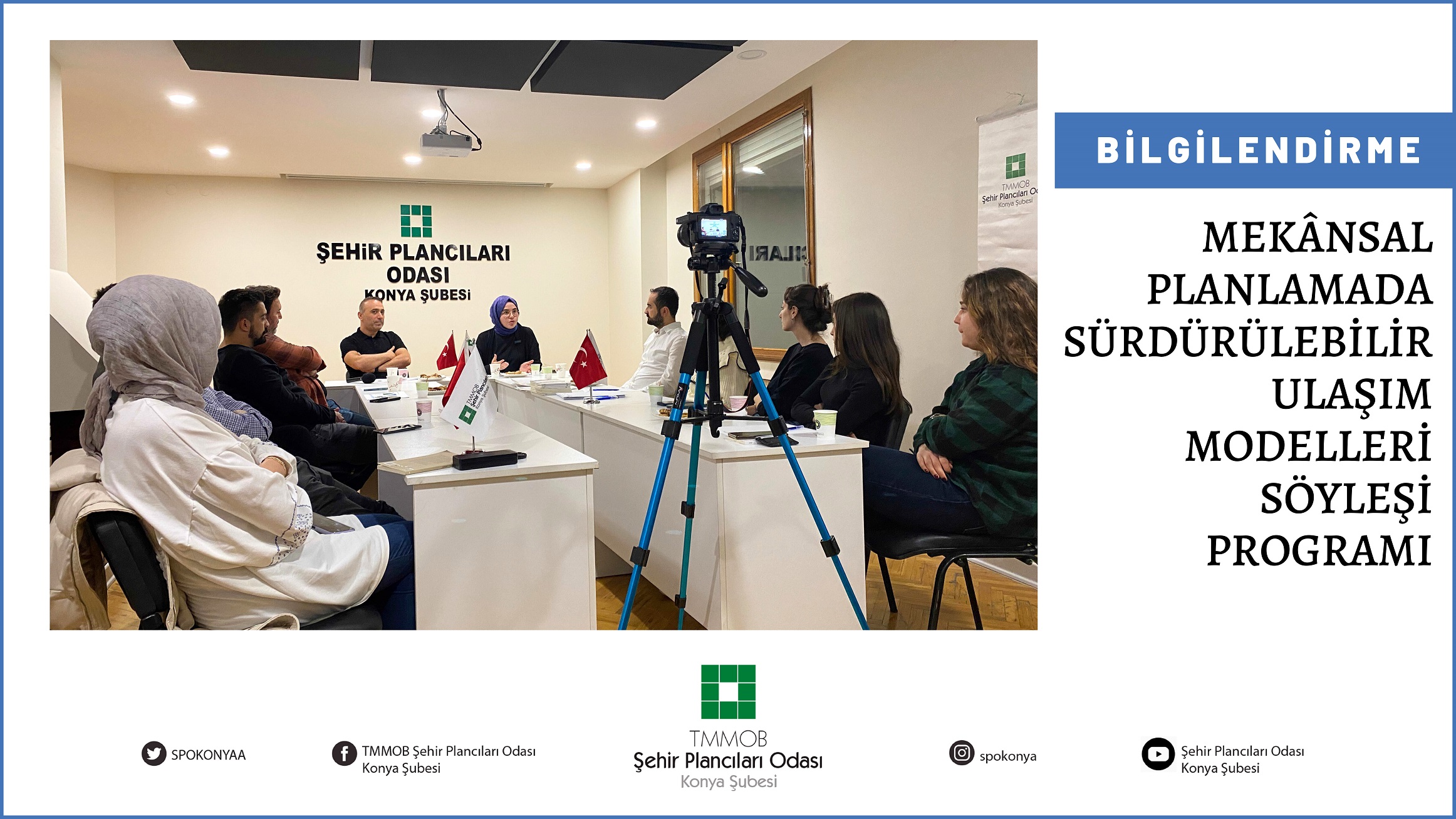 Konya Şube X. Dönem Söyleşi Programları kapsamında "Mekânsal Planlamada Sürdürülebilir Ulaşım Modelleri" konulu söyleşi programımızı 18 Ekim Çarşamba günü oda mekanımızda gerçekleştirdik.