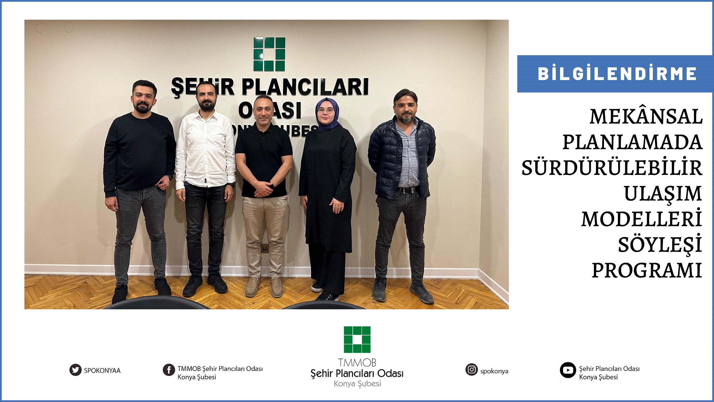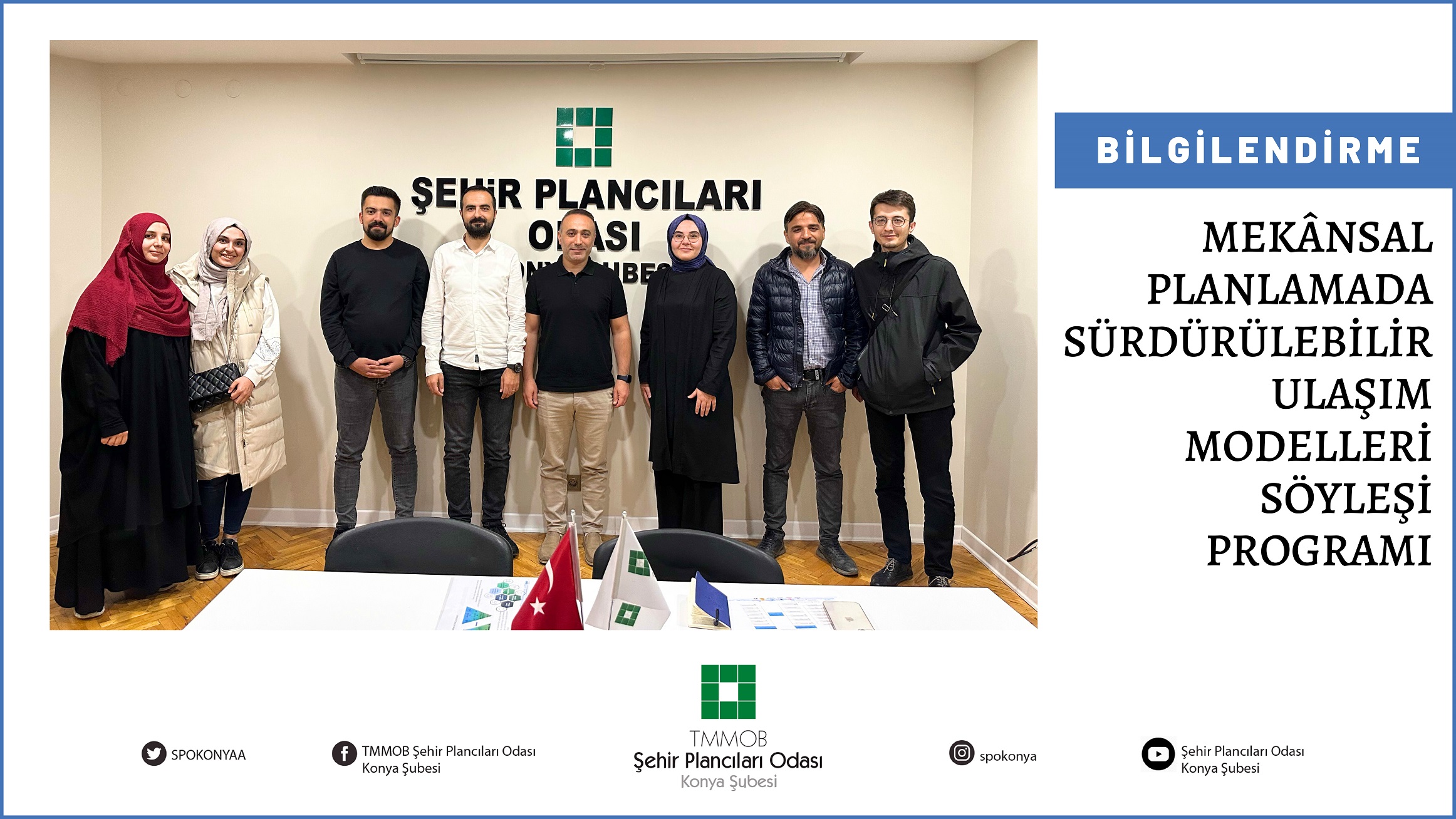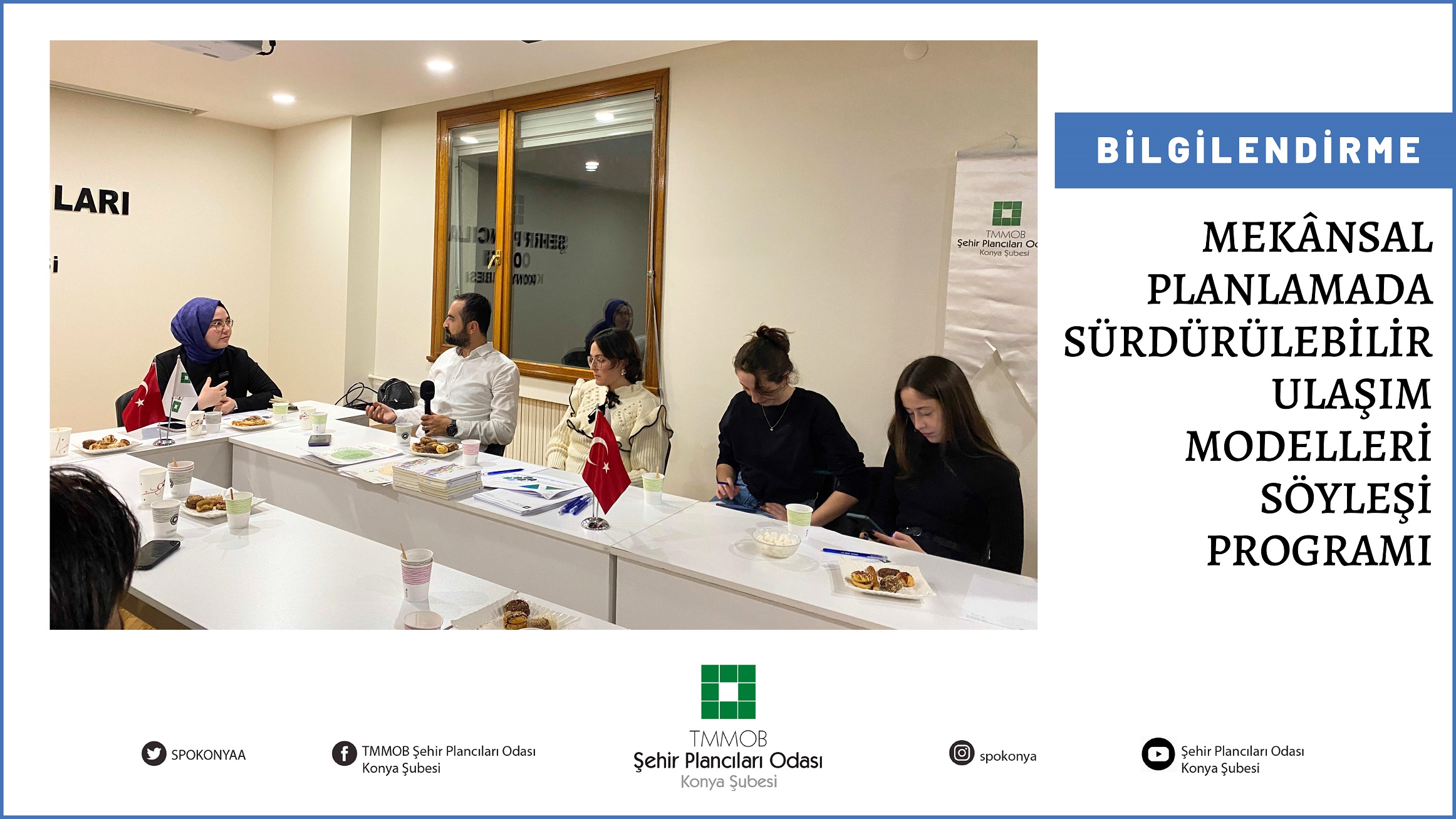 Konya Şube X. Dönem Söyleşi Programları kapsamında "Mekânsal Planlamada Sürdürülebilir Ulaşım Modelleri" konulu söyleşi programımızı 18 Ekim Çarşamba günü oda mekanımızda gerçekleştirdik.