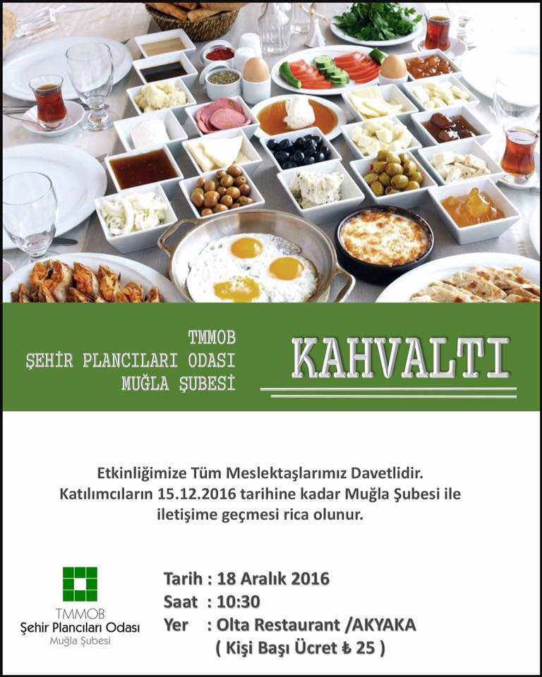 18 ARALIK 2016 TARİHİNDE TMMOB ŞEHİR PLANCILARI ODASI MUĞLA ŞUBESİ KAHVALTI ETKİNLİĞİ DÜZENLENECEKTİR