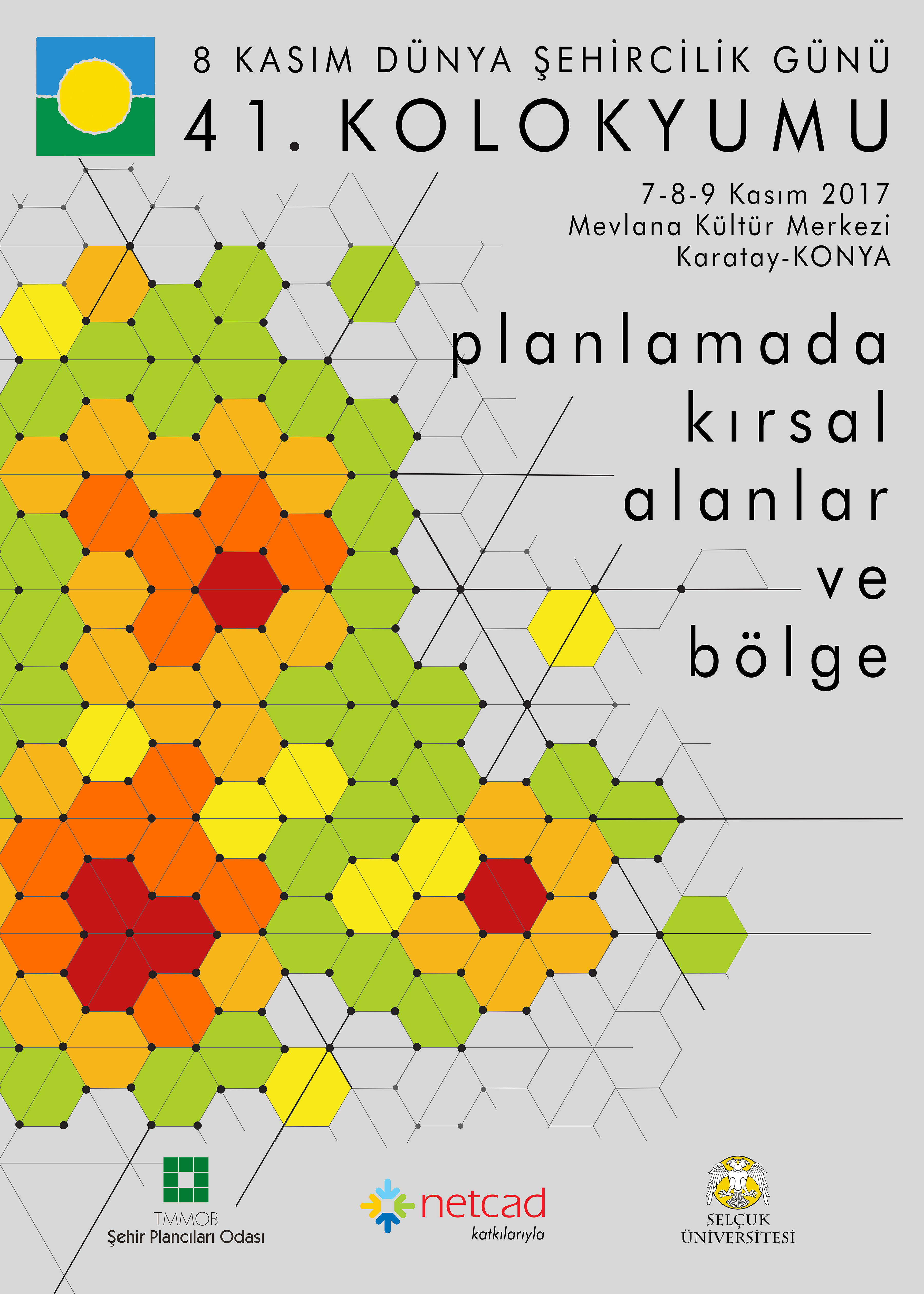 8 Kasım Dünya Şehircilik Günü etkinlikleri kapsamında her yıl düzenlenen Dünya Şehircilik Günü Kolokyumunun bu yıl 41`incisi Selçuk Üniversitesi ev sahipliğinde düzenlenecektir. Odamız Konya Şubesi sekretaryasında 7-8-9 Kasım 2017 tarihlerinde, Mevlana Kültür Merkezi`nde (Karatay- Konya)gerçekleştirilecek olan Kolokyumun ana teması "Planlamada Kırsal Alanlar ve Bölge" olarak belirlenmiştir.