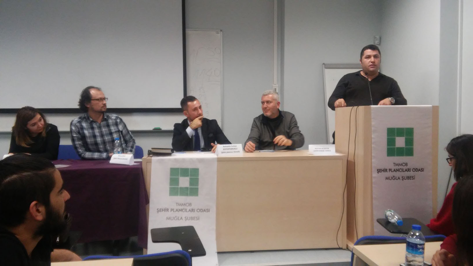 Mimarlık ve Tasarım Fakültesi Dekanı ve Şehir ve Bölge Planlama Bölümü Başkanı Prof. Dr. Koray Özcan, Söyleşi ve Odamız hakkında kısa bir bilgilendirme yapmıştır. Şubemiz Yönetim Kurulu Üyesi ve özel planlama büro sahibi Barış Çerçi özel sektördeki, Denizli Büyükşehir Belediyesi İmar ve Şehircilik Dairesi Başkanlığı`nda görevli Bedrettin Furkan Büyükpamukçu belediyedeki, Denizli İl Temsilcisi Yardımcısı Seçil Çelik gayrimenkul değerleme alanındaki ve özel planlama bürosu sahibi Mustafa Ali Şüyün özel sektördeki deneyimleri, bilgilerini anlatarak öğrencilerden gelen soruları cevaplamışlardır. Son olarak Denizli İl Temsilcisi Ömer Girgin Şubemiz ve Temsilciliğimizin bu ve bunun gibi söyleşi veya eğitimlerin devam edeceğini belirttikten sonra Söyleşi sona ermiştir.