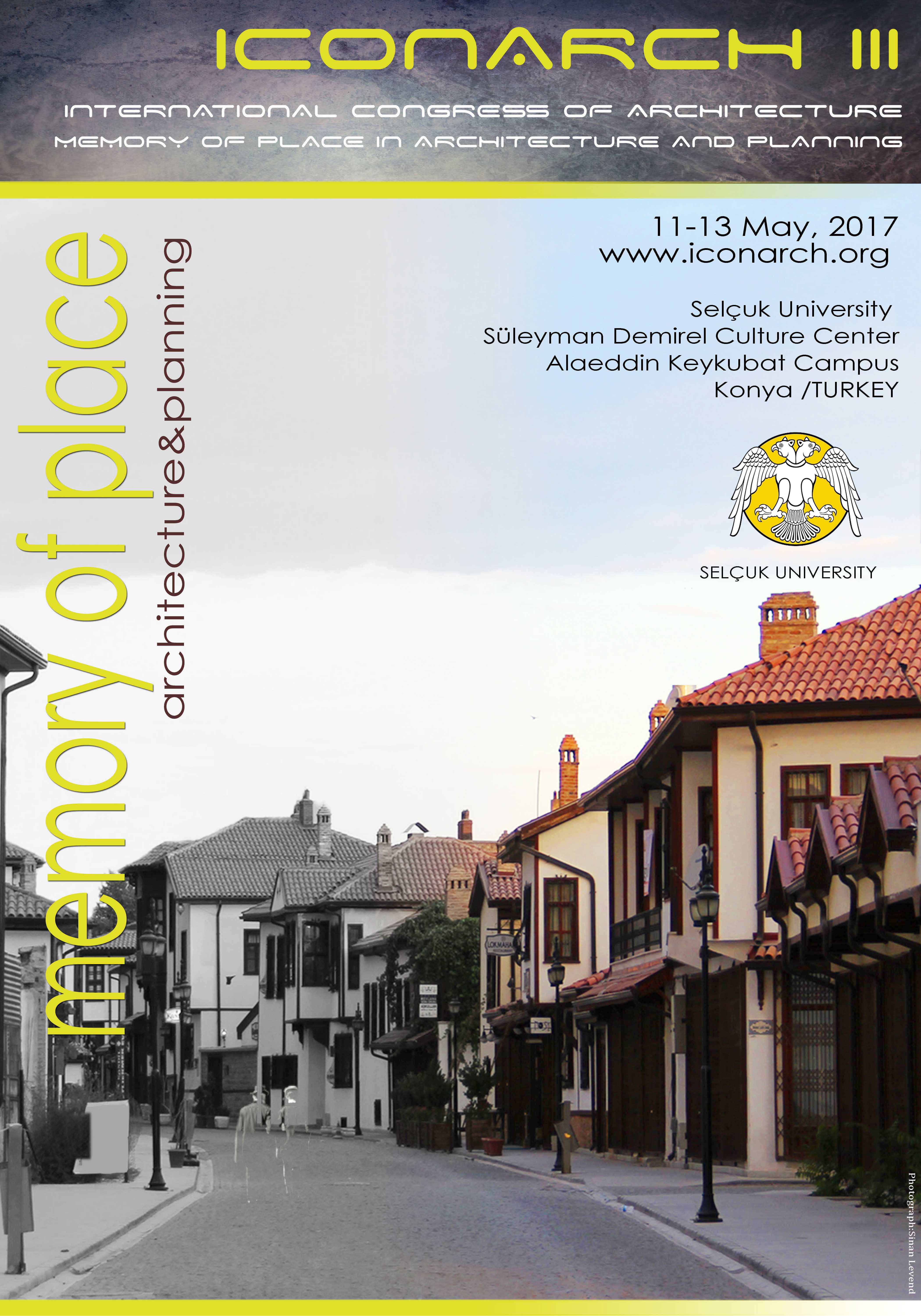 ULUSLARARASI MİMARLIK KONFERANSI`NIN 3.SÜ (ICONARCH III) 11-13 MAYIS 2017 TARİHLERİNDE KONYA-SELÇUK ÜNİVERSİTESİ`NDE GERÇEKLEŞTİRİLECEKTİR.