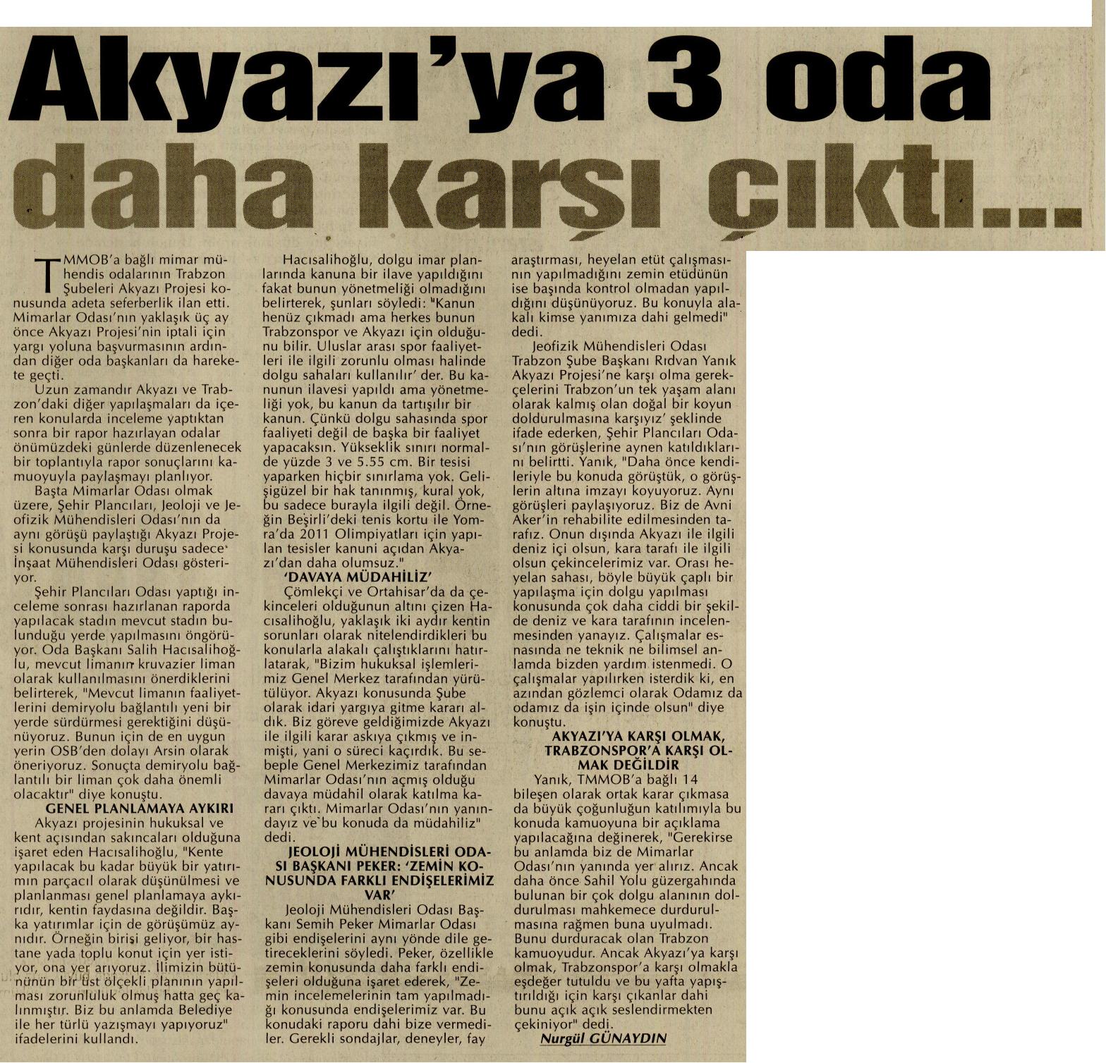 AKYAZI'YA 3 ODA DAHA KARŞI ÇIKTI