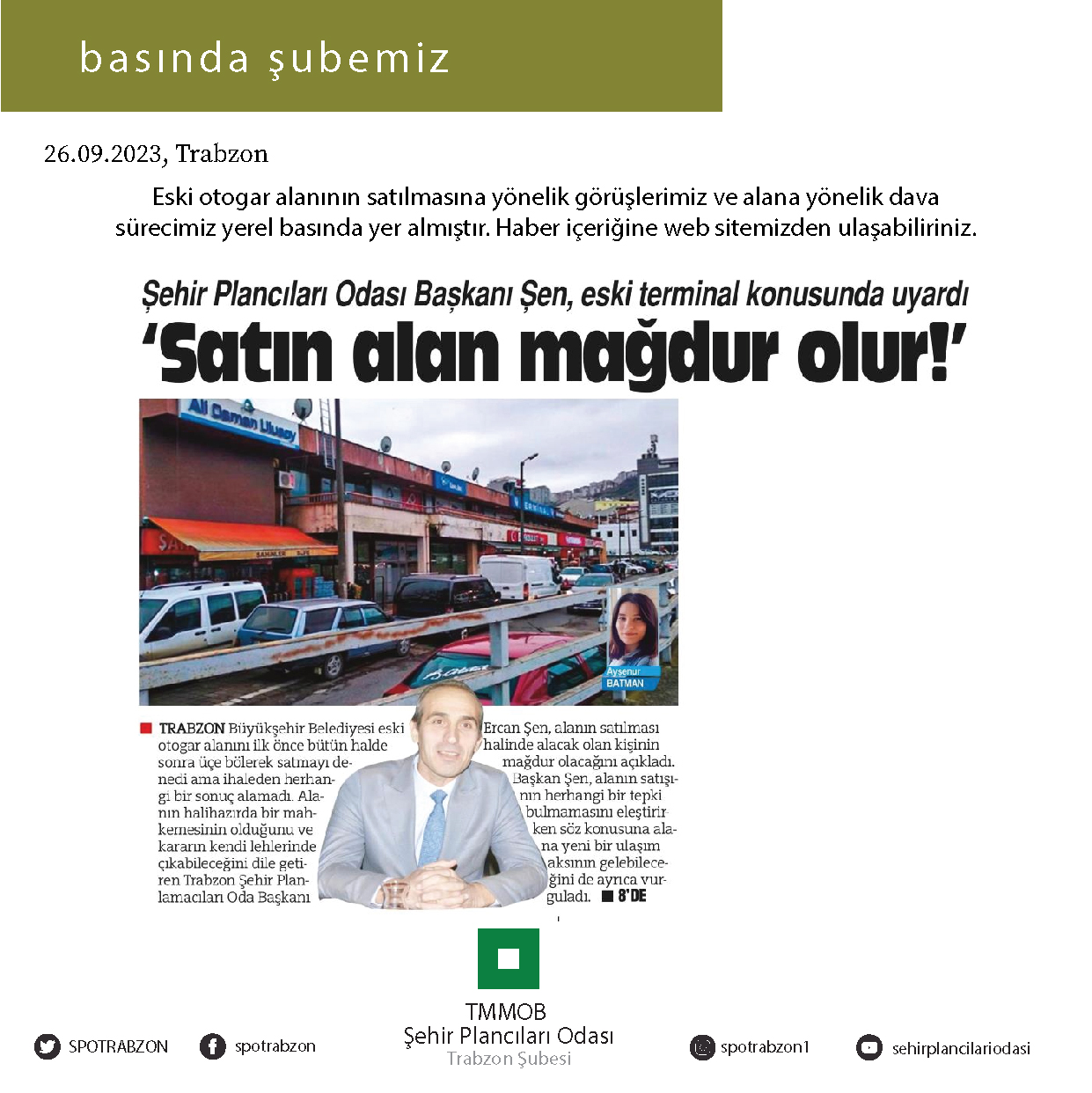 ESKİ OTOGAR ALANININ SATILMASINA YÖNELİK GÖRÜŞLERİMİZ VE ALANA YÖNELİK DAVA SÜRECİMİZ YEREL BASINDA YER ALMIŞTIR.