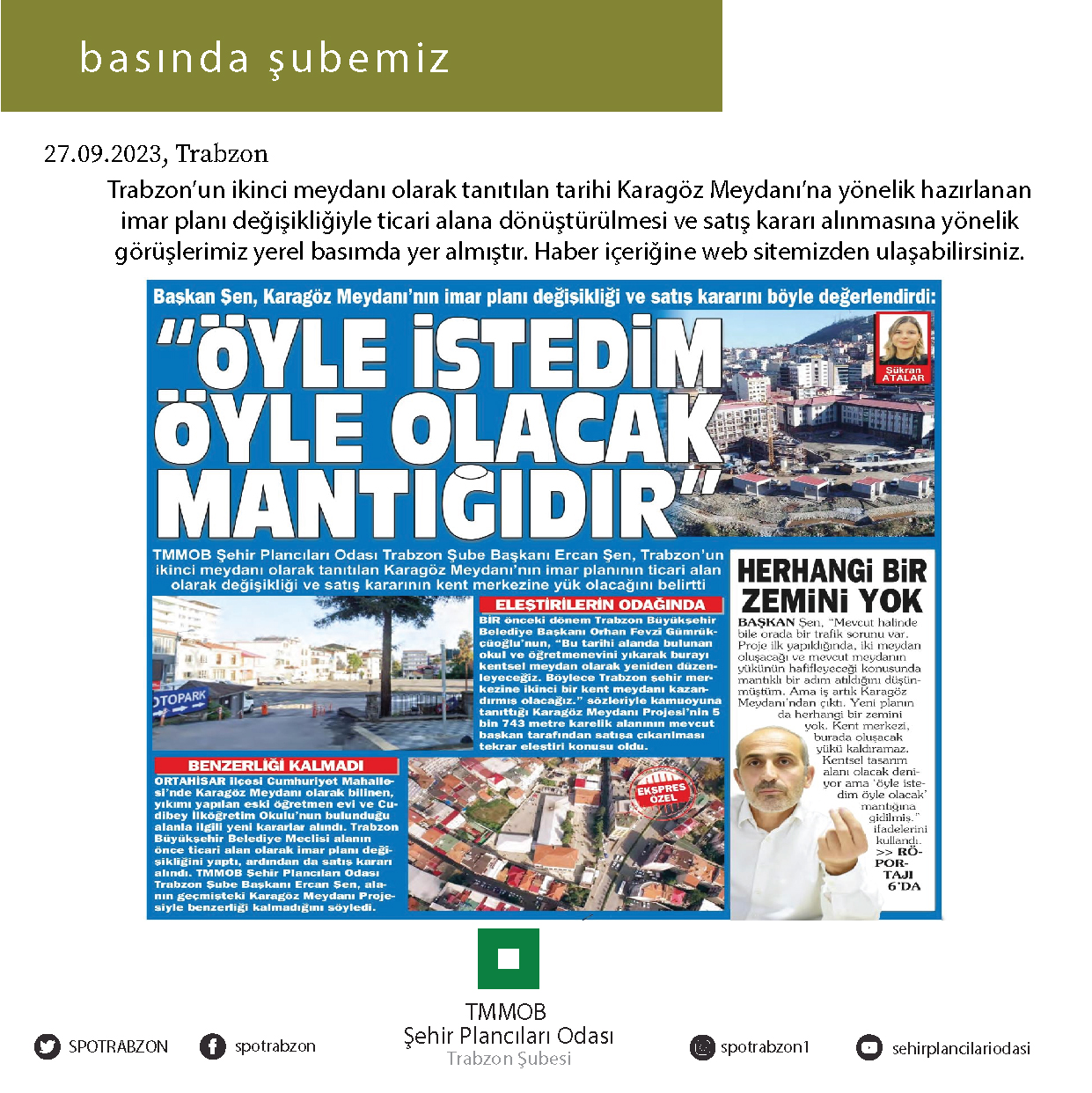 TRABZON'UN İKİNCİ MEYDANI OLARAK TANITILAN TARİHİ KARAGÖZ MEYDANI'NIN YÖNELİK HAZIRLANAN İMAR PLANI DEĞİŞİKLİĞİYLE TİCARİ ALANA DÖNÜŞTÜRÜLMESİ VE SATIŞ KARARI ALINMASINA YÖNELİK GÖRÜŞLERİMİZ YEREL BASINDA YER ALMIŞTIR.