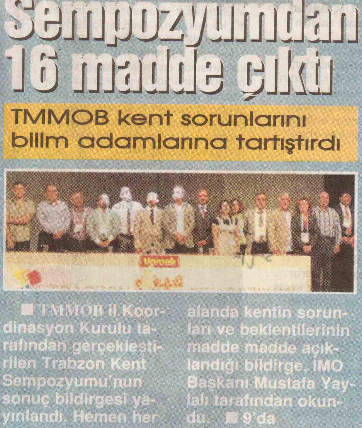 TMMOB il Koordinasyon Kurulu tarafından gerçekleştirilen Trabzon Kent Sempozyumu‘nun sonuç bildirgesi yayınlandı. Hemen her alanda kentin sorunları ve beklentilerinin madde madde açıklandığı bildirge, İMO Başkanı Mustafa Yaylalı tarafından okundu.