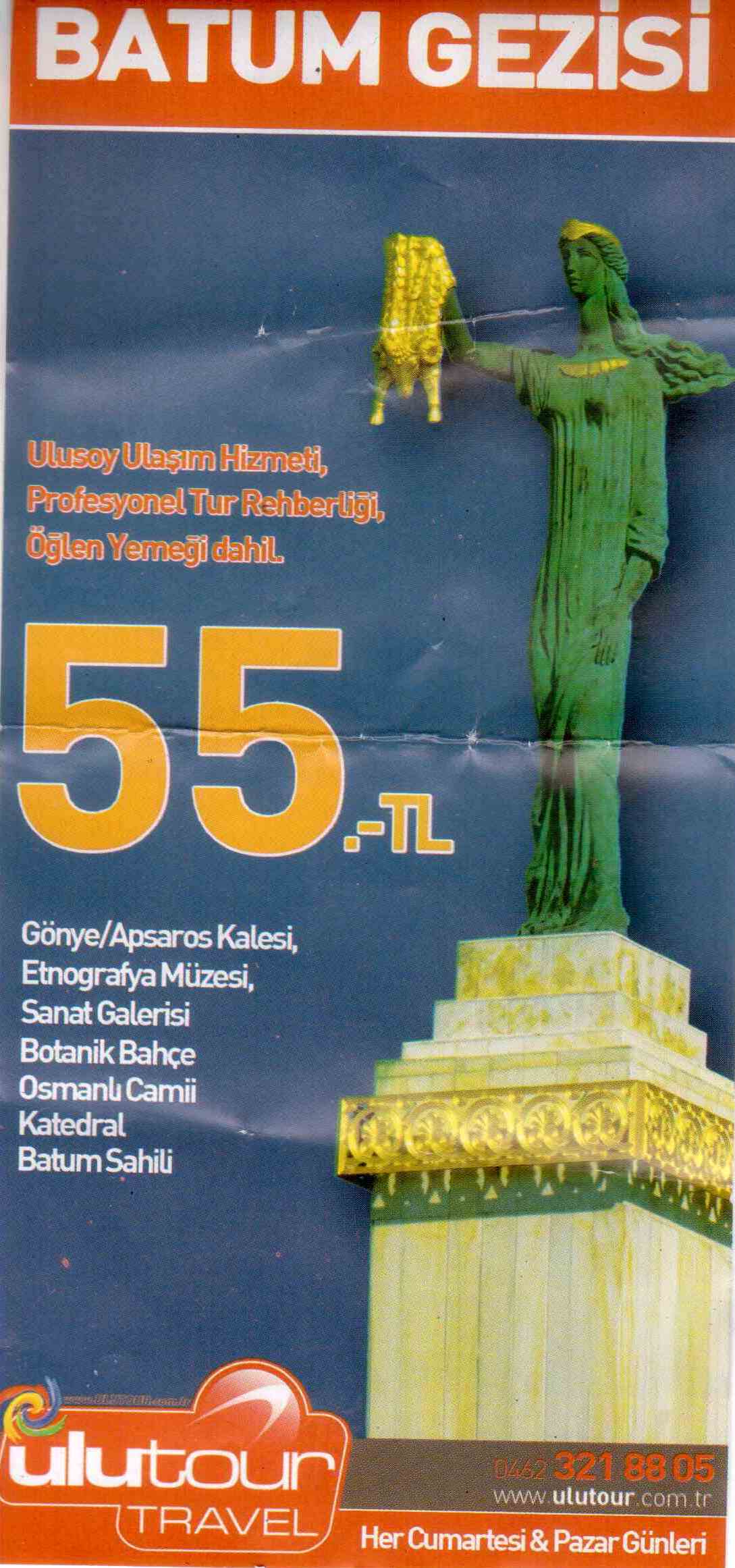 TMMOB Şehir Plancıları Odası Trabzon Şubesi olarak, 6 Mayıs 2012 Pazar günü Batum gezisi düzenlenecektir. Katılmak isteyenlerin ve birlikte katılacak yakınlarının ad-soyad-cep telefonu no-katılacak kişi sayısı bilgilerini 24 Nisan 2012 Salı günü saat 18.00‘e kadar Şubemize başvurmaları, 28 Nisan 2012 Cumartesi günü saat 13.00‘e kadar ise katılım ücretini Şubemize nakit olarak ödemeleri gerekmektedir.
